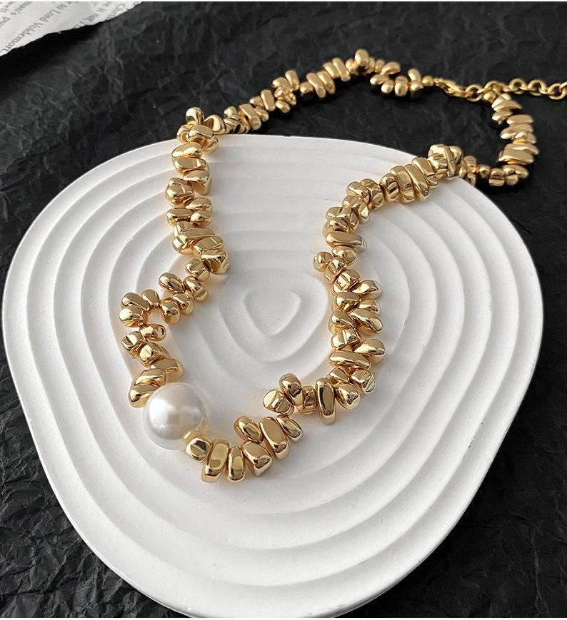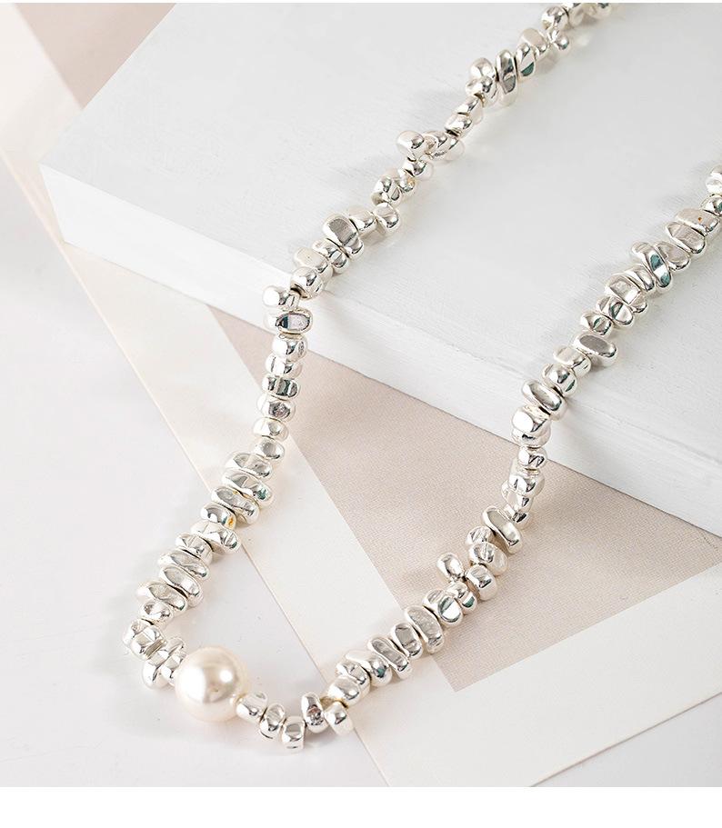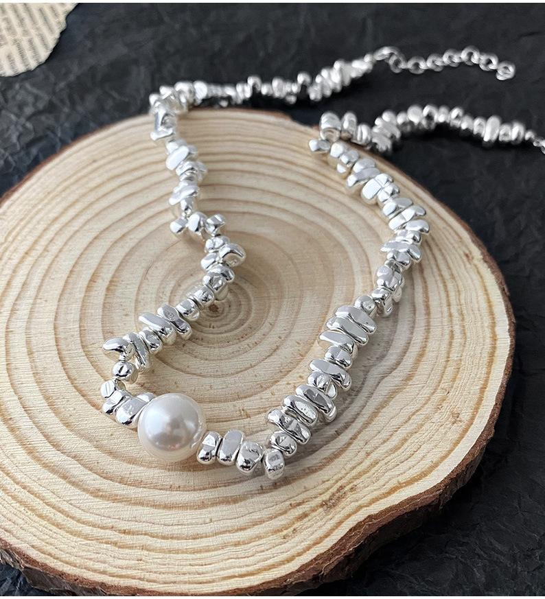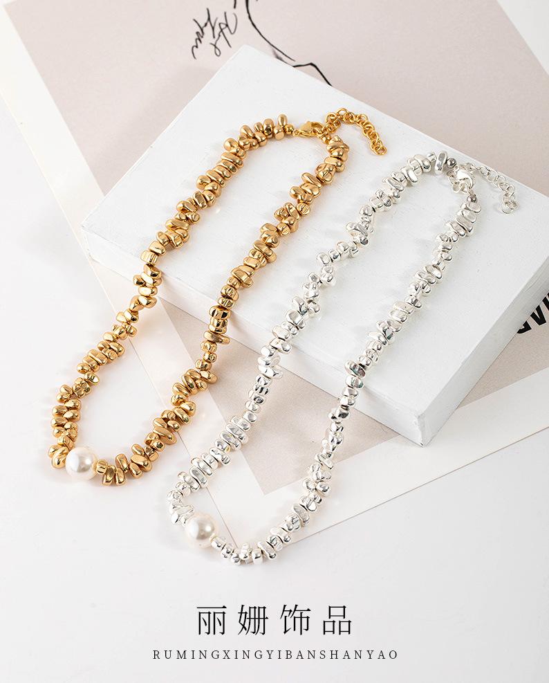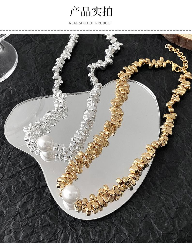 Venta al por mayor del fabricante Cadena de clavícula retro europea y americana Plata rota Pareja Collar irregular Nicho Collar geométrico de perlas