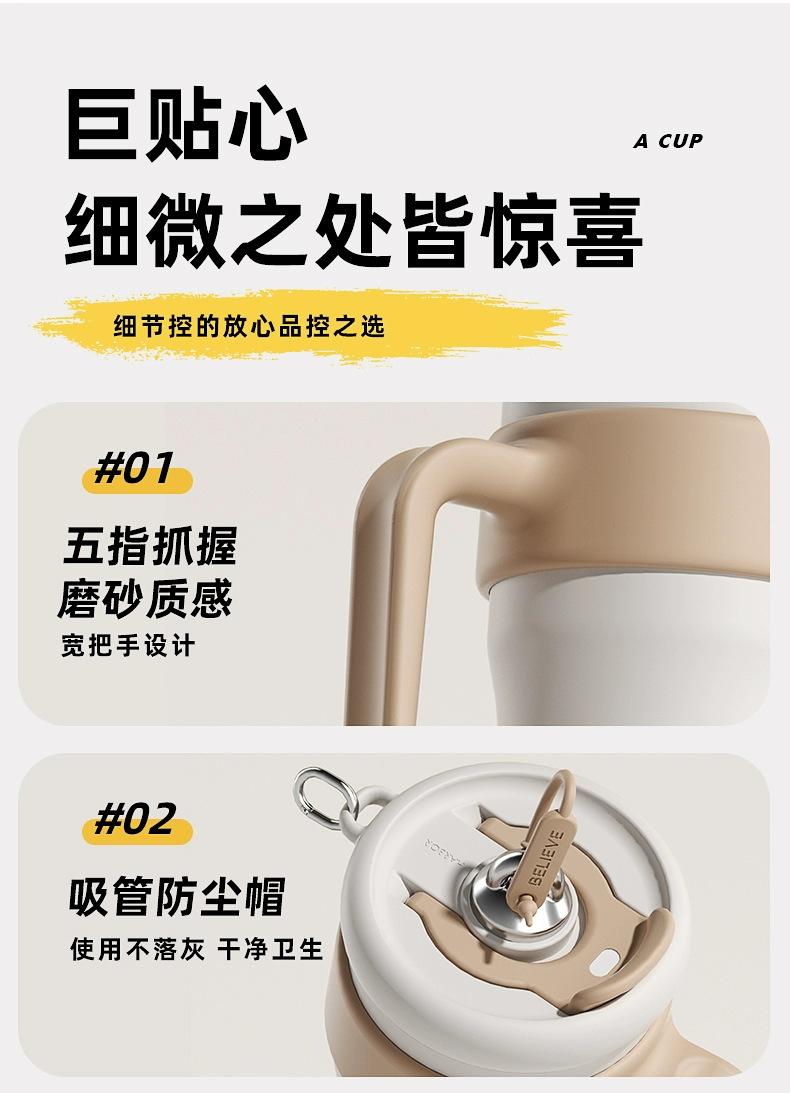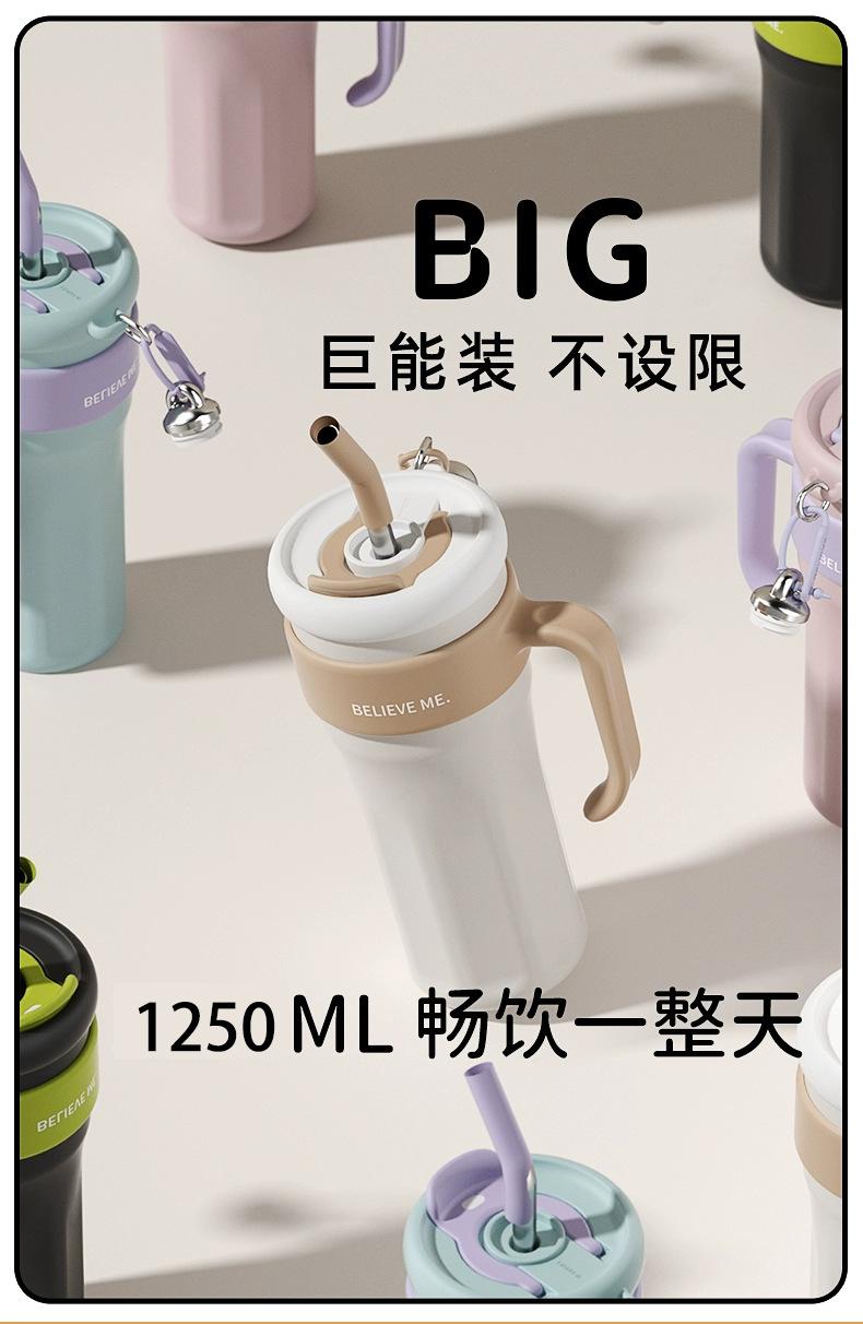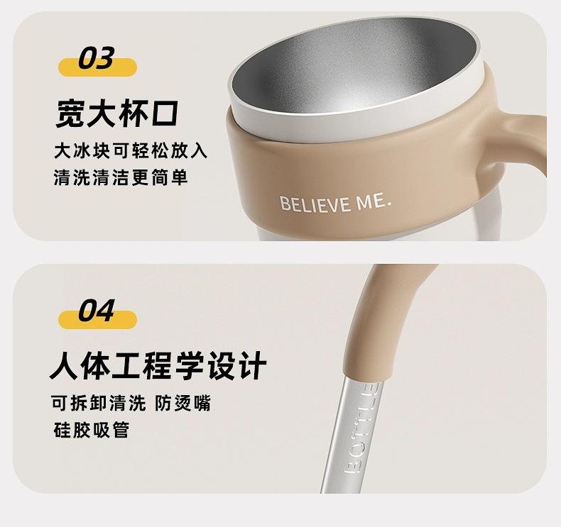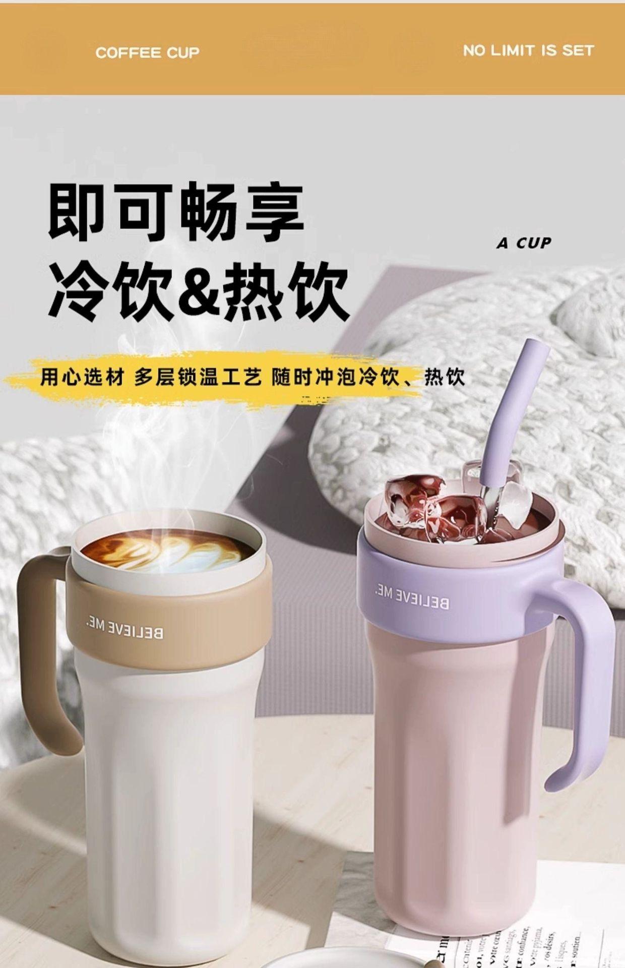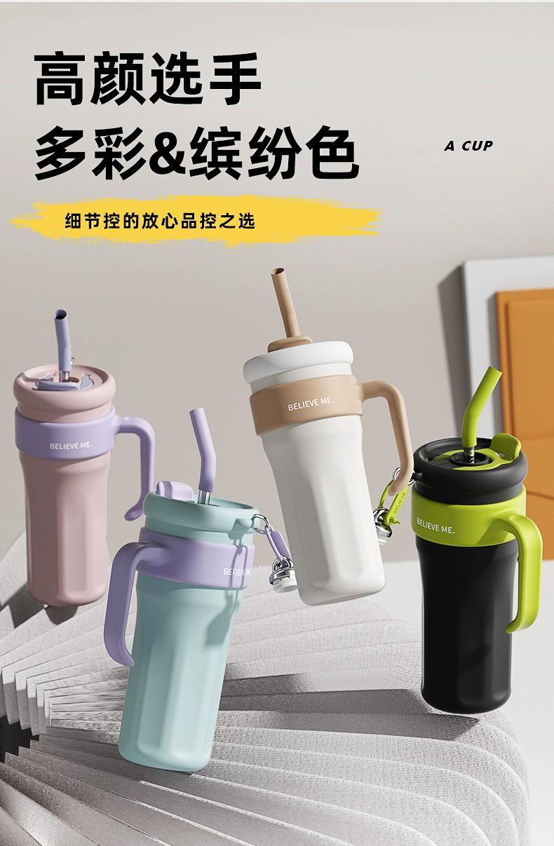 Vaso de Hielo Big Mac Acero Inoxidable 316 Vaso Termo con Pajita Vaso de Agua para Mujer Vaso de Agua de Aspecto Elegante Gran Capacidad con Asa