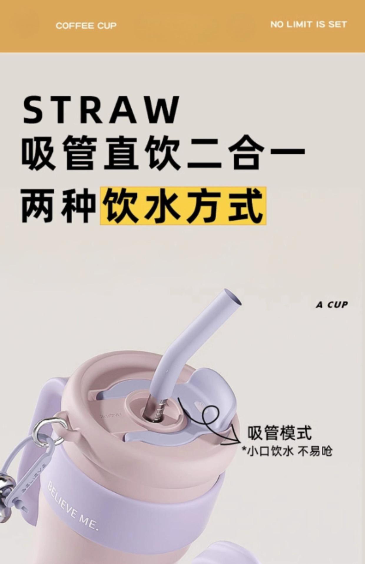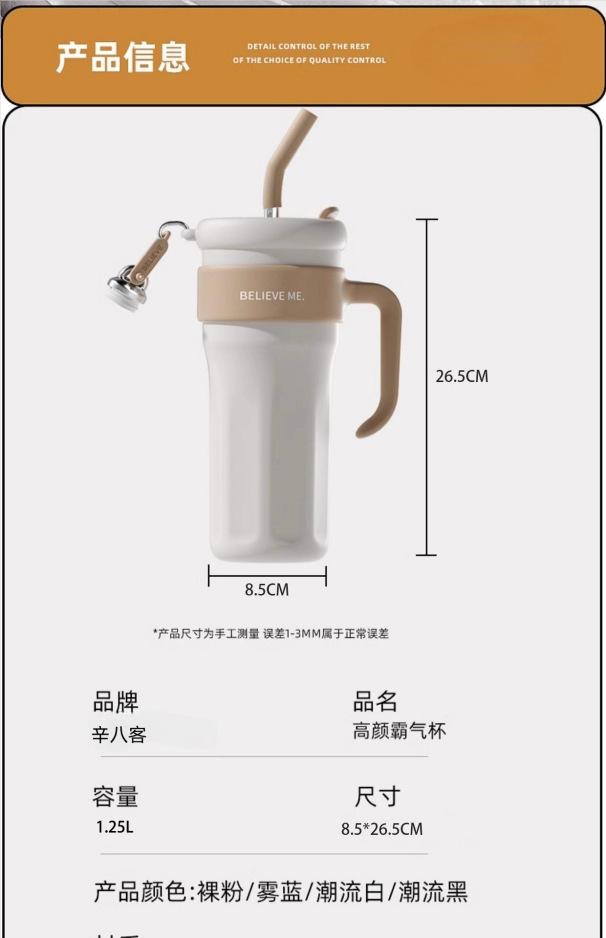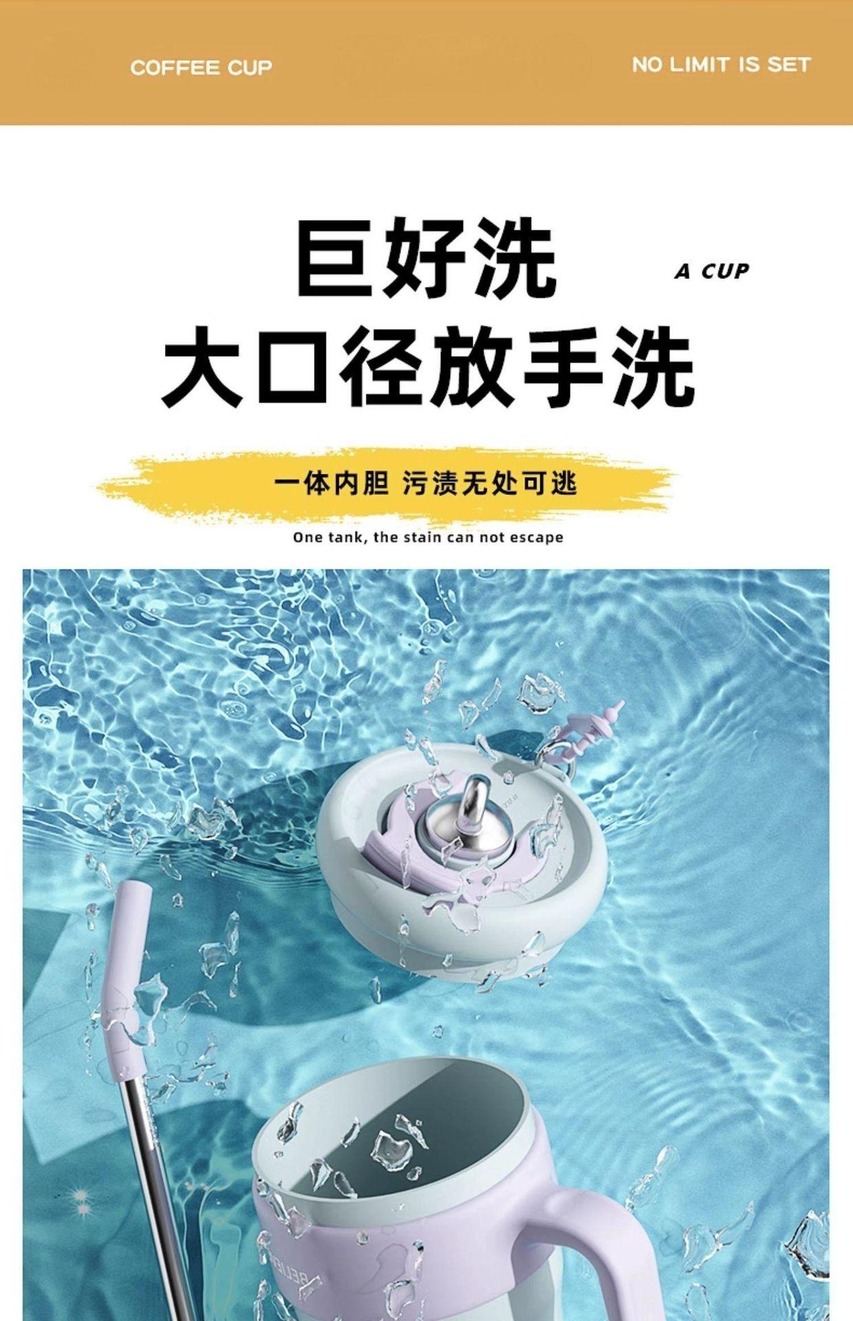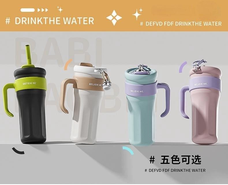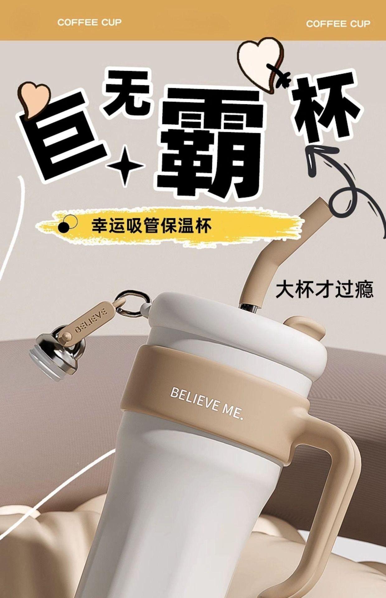 Vaso de Hielo Big Mac Acero Inoxidable 316 Vaso Termo con Pajita Vaso de Agua para Mujer Vaso de Agua de Aspecto Elegante Gran Capacidad con Asa