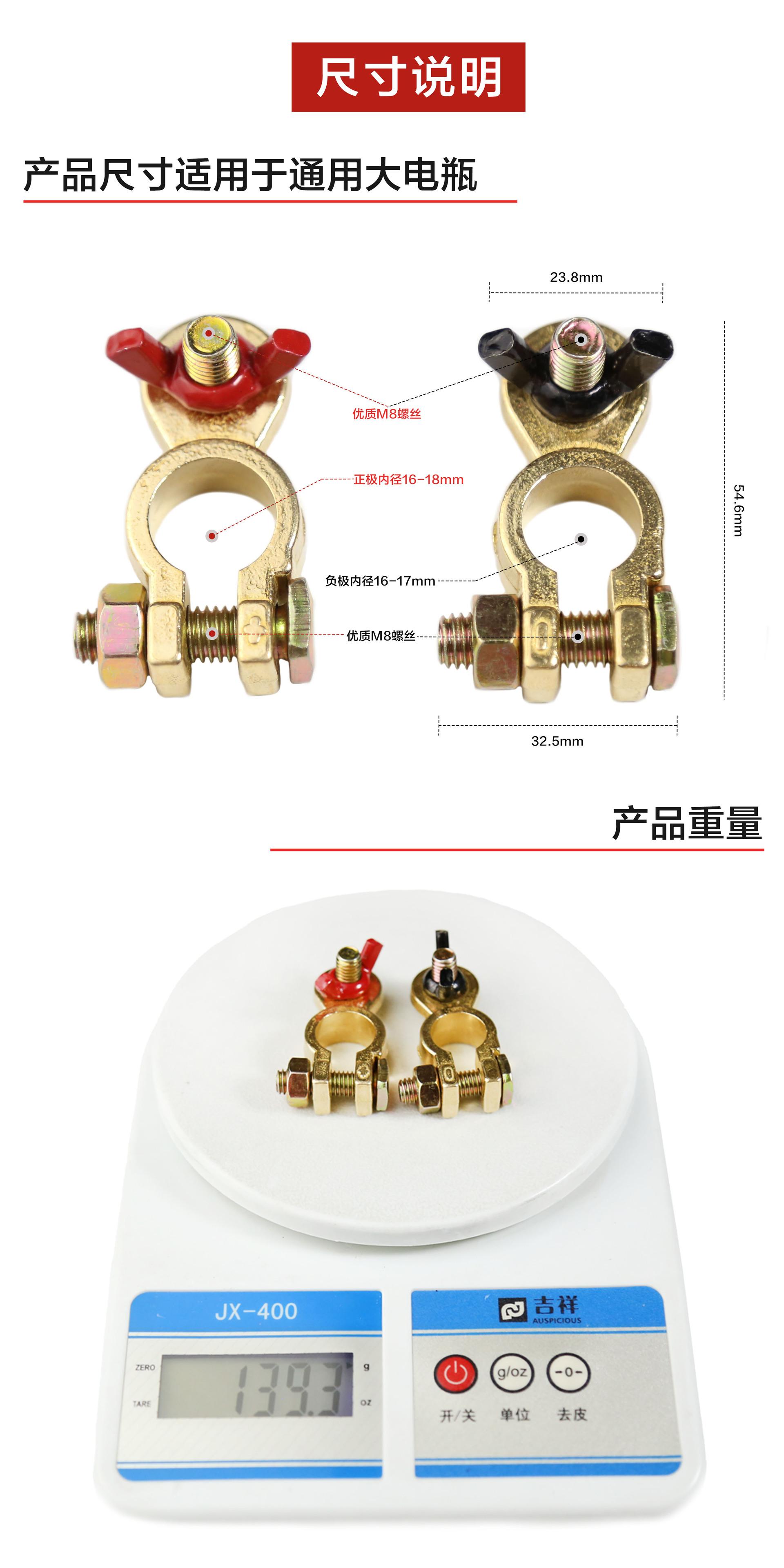 Conector de batería de cobre, cabeza de pila, tuerca de mariposa, clip de batería, clip de batería, interruptor de terminal de batería, venta en stock