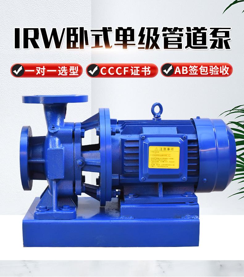 Bomba de agua limpia de suministro Bomba de tubería de una etapa IRW Bomba de refuerzo de circulación de agua de gran caudal Bomba de tubería horizontal de una etapa IRW