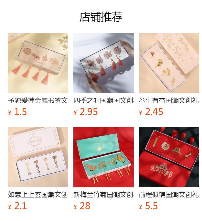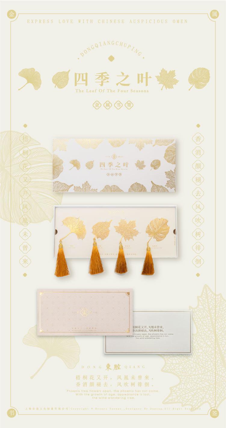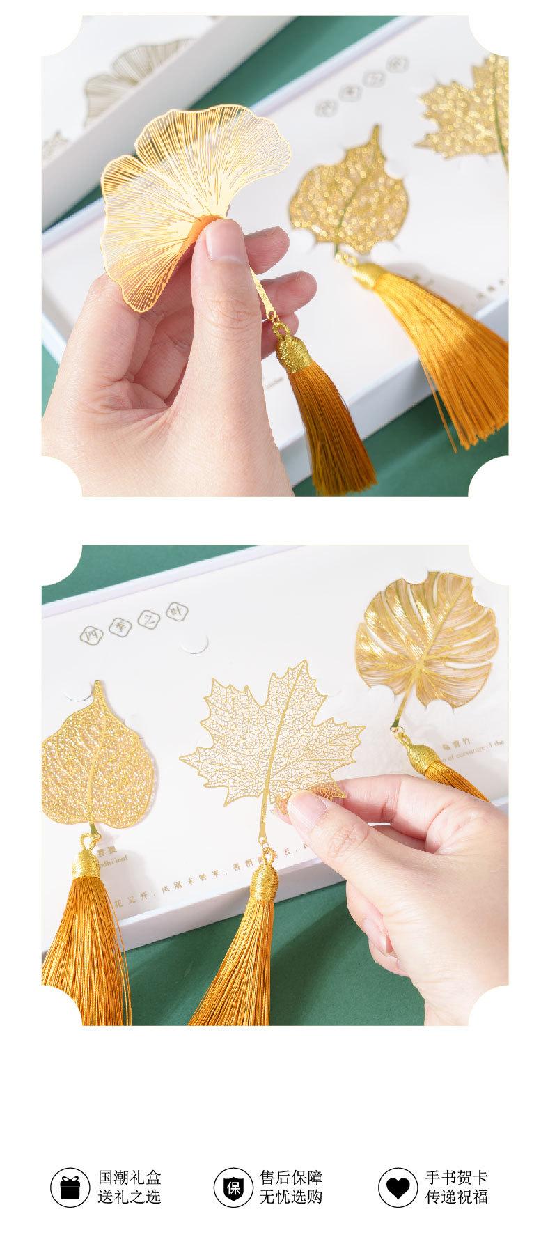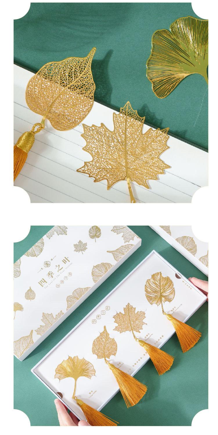 Separador de Libros Metálico Hoja Cuatro Estaciones Estilo Chino Cultural y Creativo Pequeño Regalo Caja de Regalo Creativa Graduación de Estudiante Día del Maestro Regalo