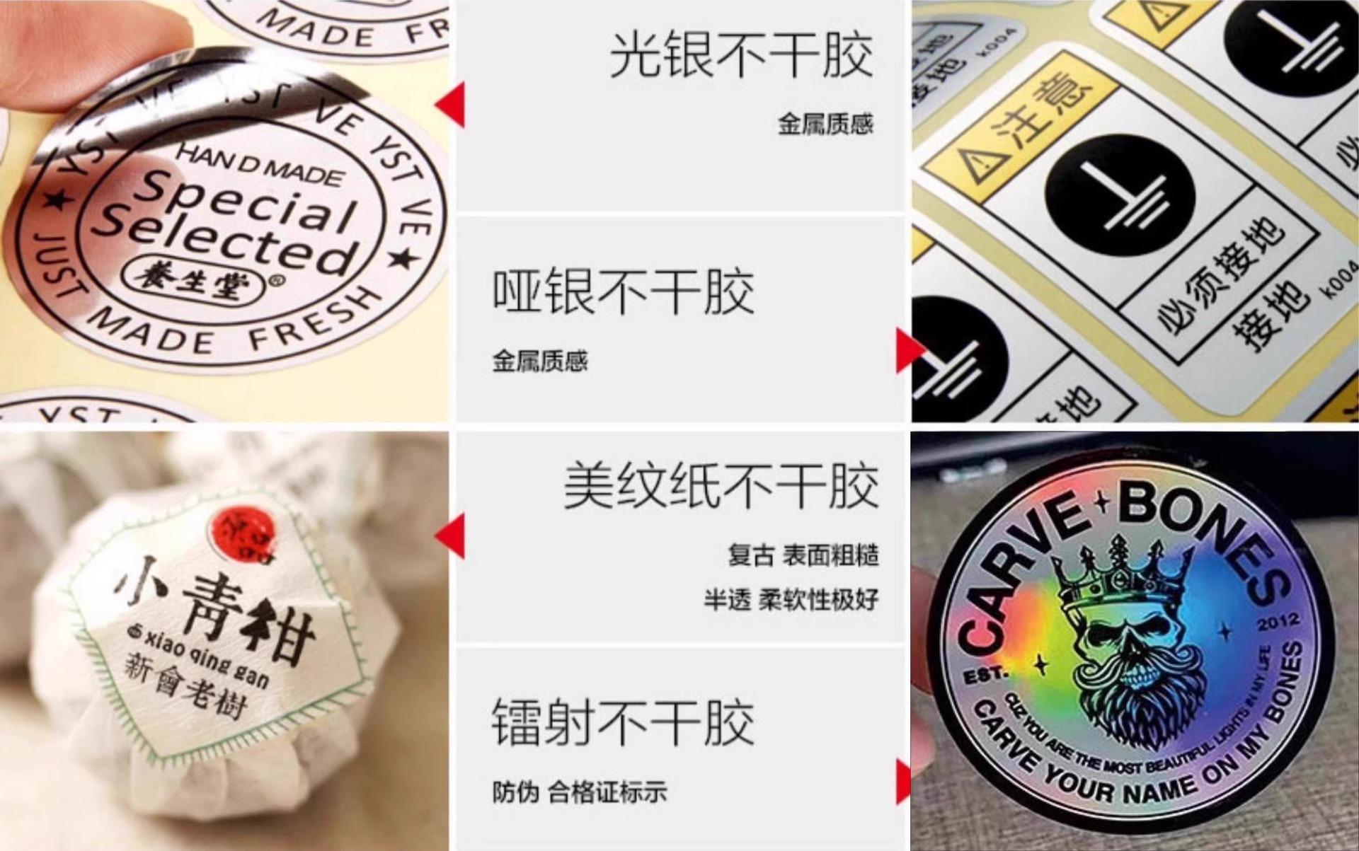 Fragile paper, Pvc self-adhesive, Mirror self-adhesive, Copper plate self-adhesive, Other