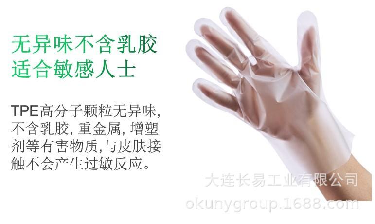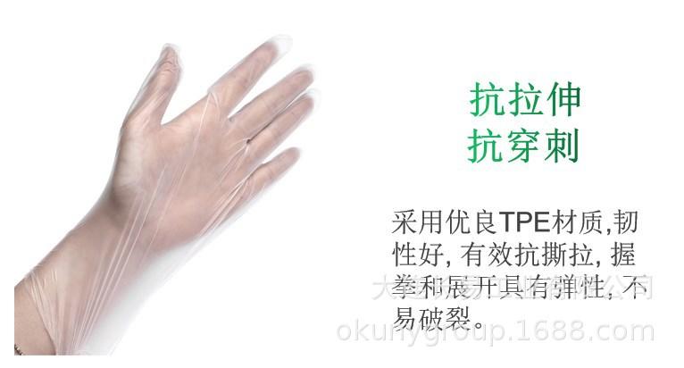 Los guantes desechables de TPE son adecuados para tareas domésticas, catering, salones de belleza, procesamiento de alimentos, electrónica, talleres electrónicos libres de polvo, hoteles,