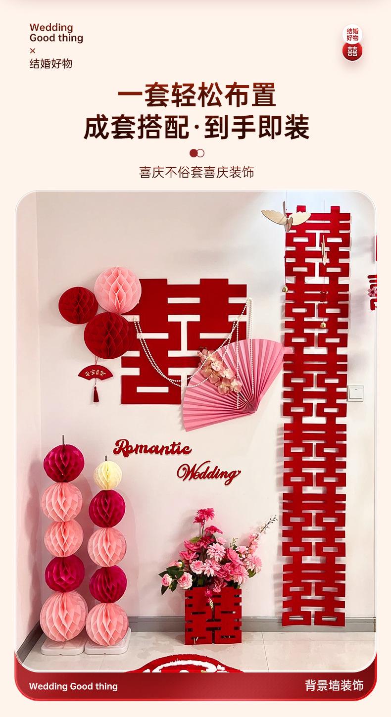 Xiaohongshu mismo estilo set de decoración de habitación de boda sala de estar decoración de boda dormitorio de la novia para toda la casa suministros Daquan celebridad de internet decoración de habitación de boda columna de bolas de panal Xiaohongshu mismo estilo dormitorio de boda set de decoración de casa nueva suministros de boda