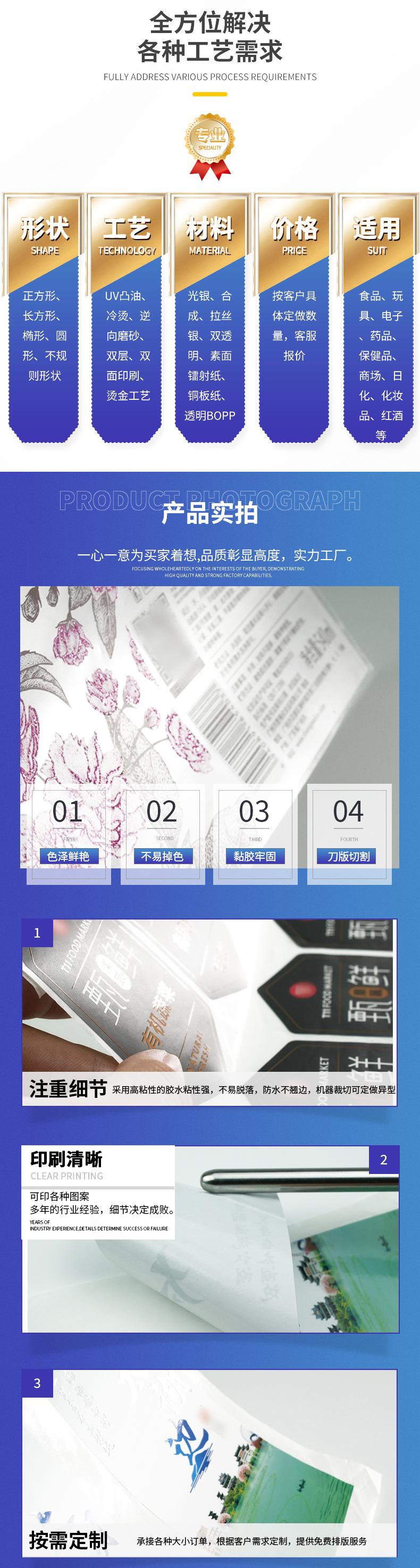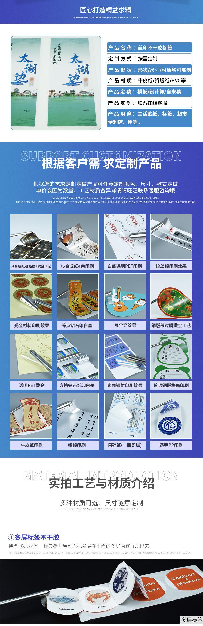 Etiqueta Autoadhesiva Personalizada Serigrafía Uv Etiqueta de Papel Sintético Impermeable y a Prueba de Aceite Super Adhesiva No se Cae Fácilmente