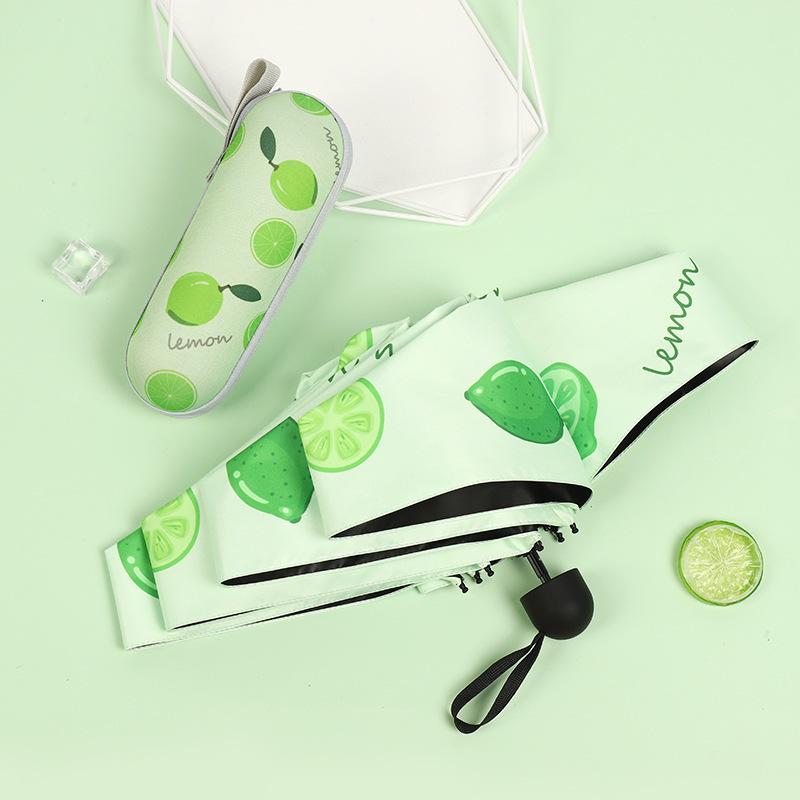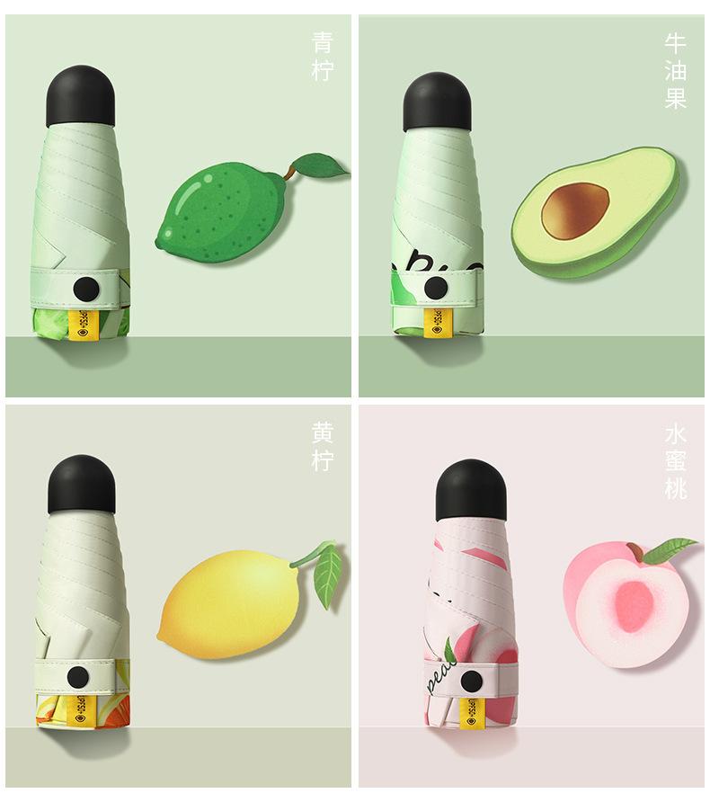 Fruta 50% de descuento mini sombrilla creativa caricatura lluvia doble uso femenino pegamento negro protección solar protección UV logo cápsula