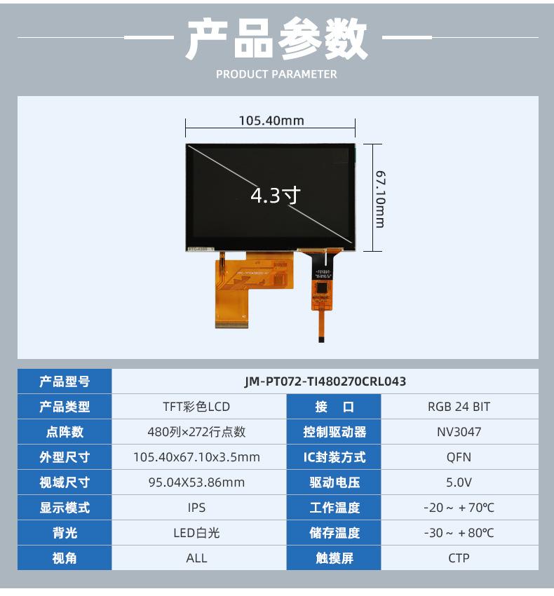Pantalla LCD de 4.3 pulgadas IPS industrial TFT a color con interfaz TP480 * 272RGB Pantalla LCD de 4.3 pulgadas
