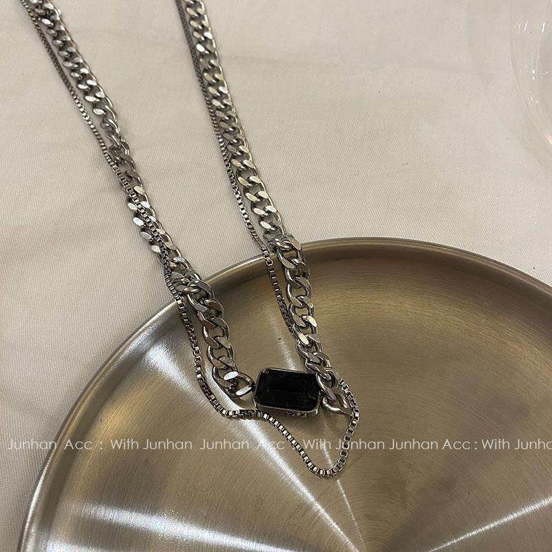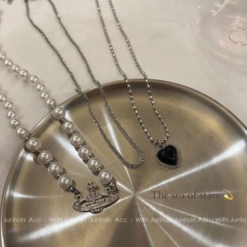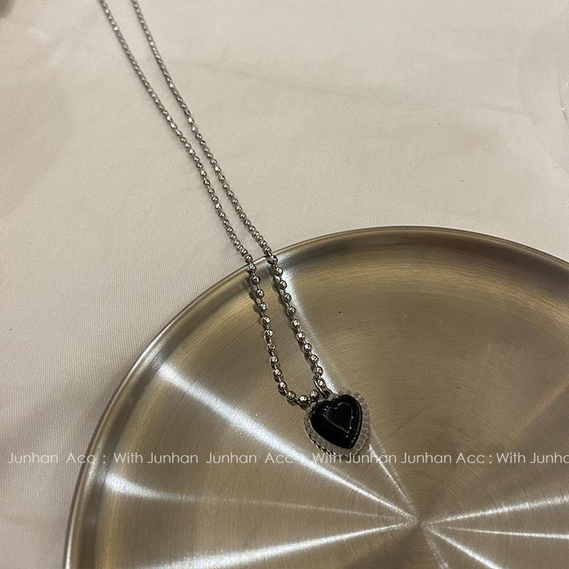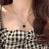 Collar de titanio acero amor gema negra temperamento para mujer cadena de perlas cadena simple para clavícula cadena para suéter collar Viento Frío