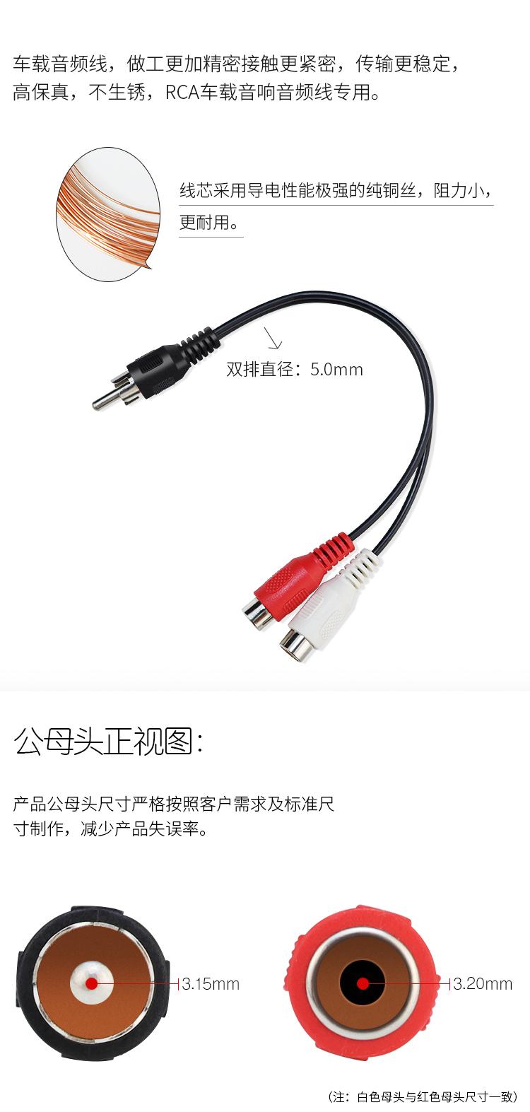 Adaptador RCA macho a hembra para línea de audio y video AV de 3,5" con conector Lotus Head de uno a dos. Extensión de audio para automóvil.