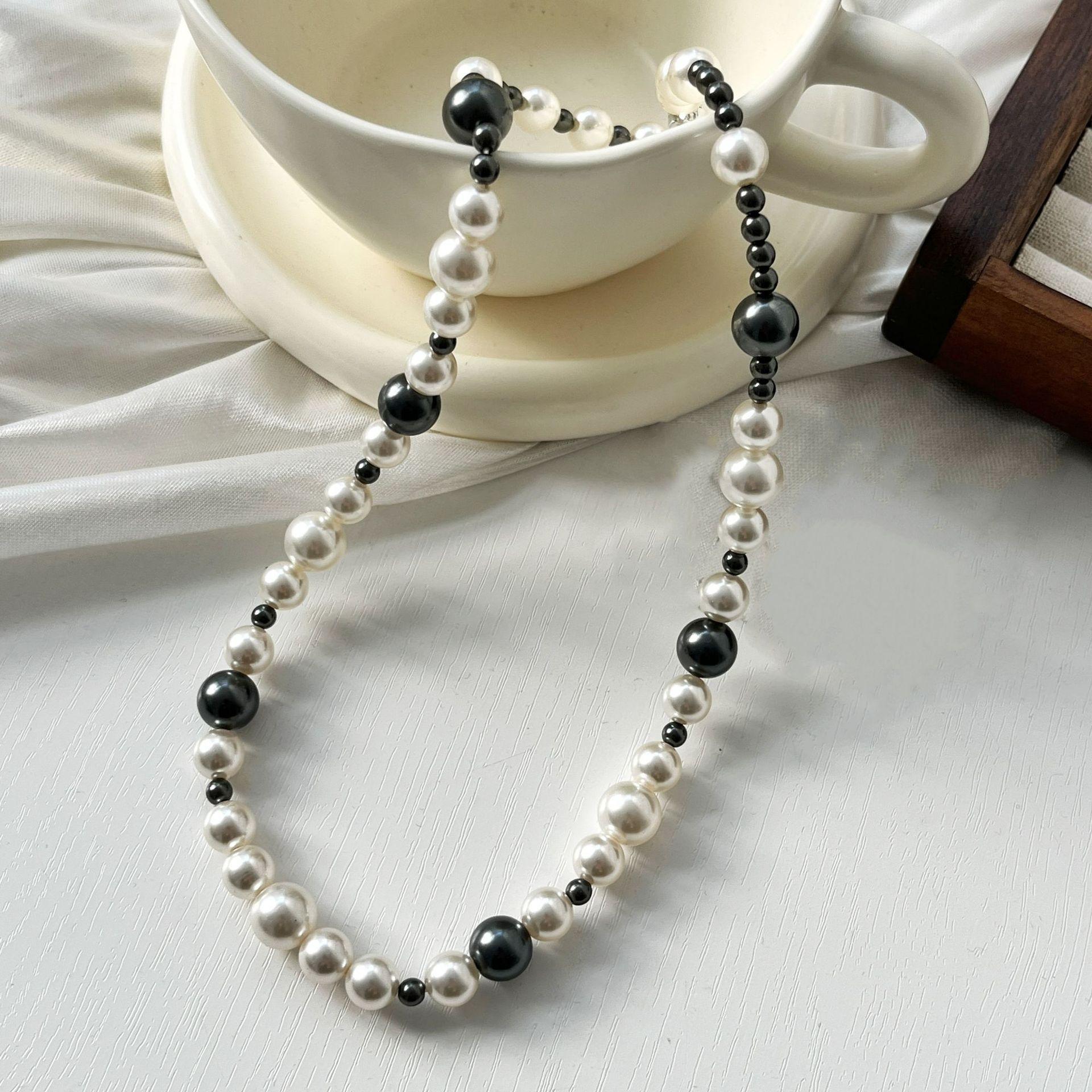 Collar de perlas Shijia, joyería para mujer, cadena de suéter ligera y fuerte con degradado de perlas, cadena de cuentas completa, cadena de clavícula de nicho de lujo ligera