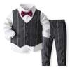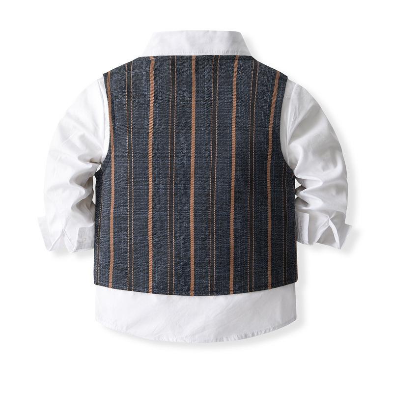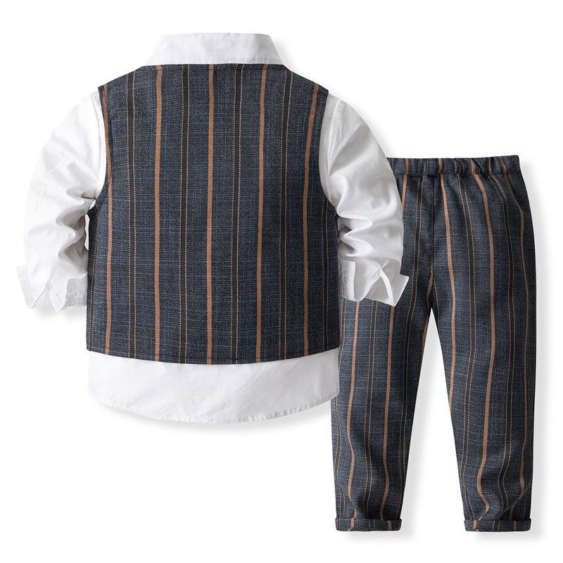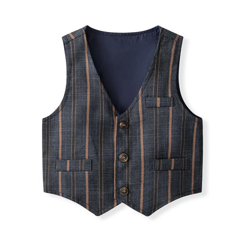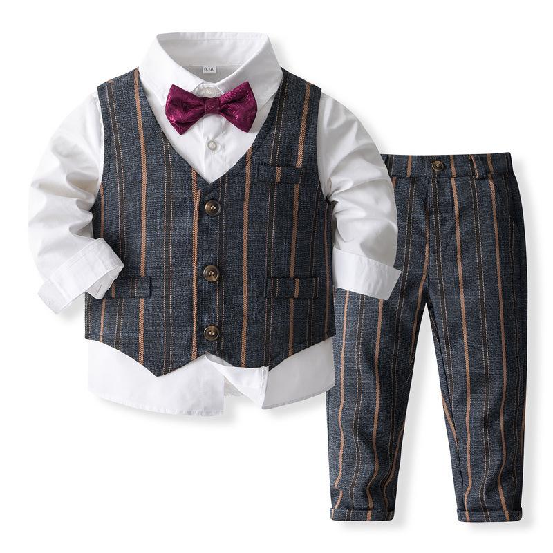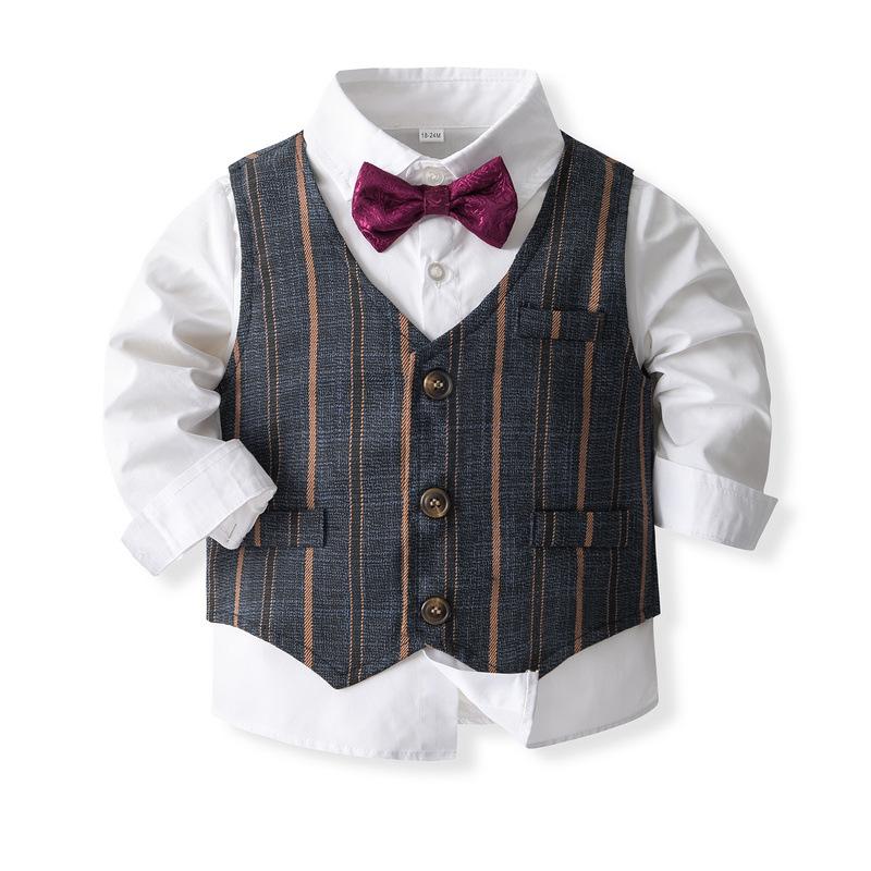 Chaleco de rayas para niños, traje pequeño, estilo británico, para niño y niña de las flores, traje de manga larga, traje pequeño para bebé de un año