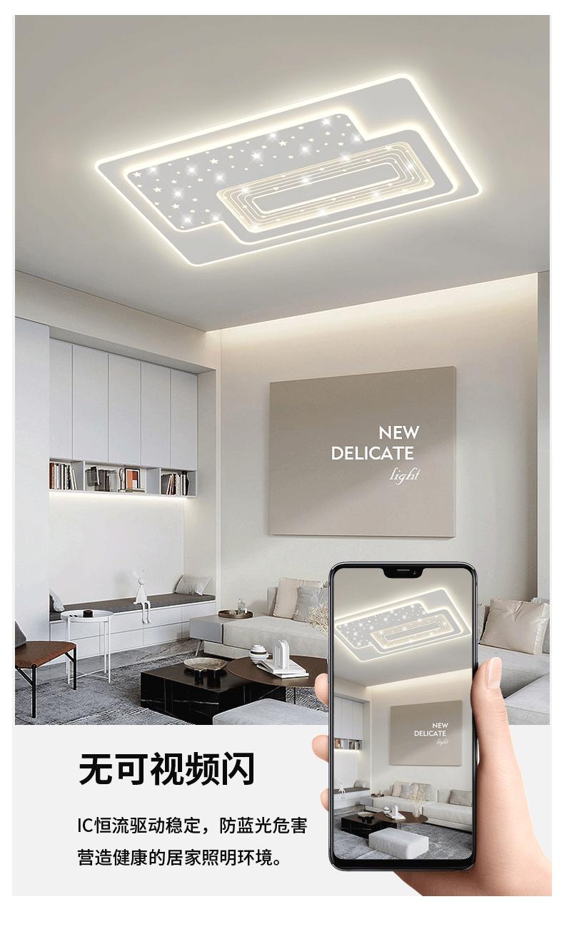 Lámpara de techo rectangular creativa y sencilla para sala de estar, 2023. Nueva lámpara de techo cuadrada para dormitorio principal.