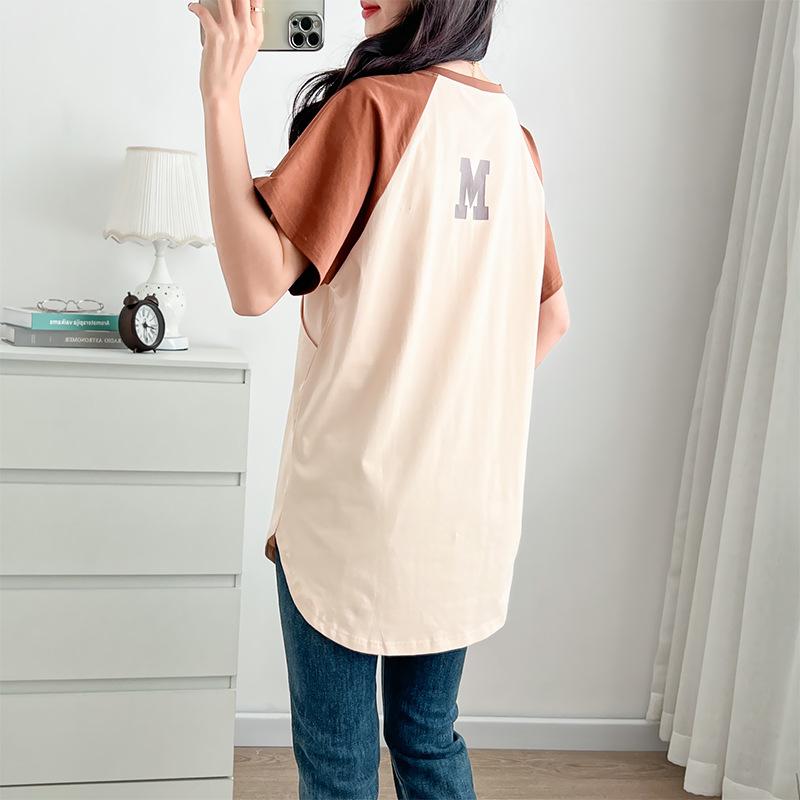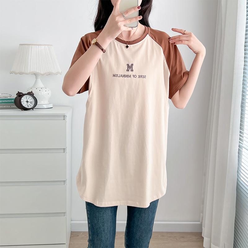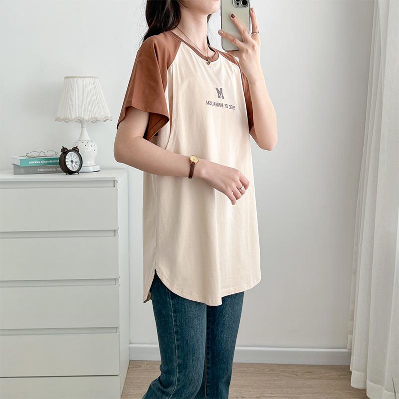 Camiseta de verano de longitud media para embarazadas, ropa de exterior posparto, ropa de lactancia con abertura lateral, boca de lactancia, algodón puro, venta al por mayor