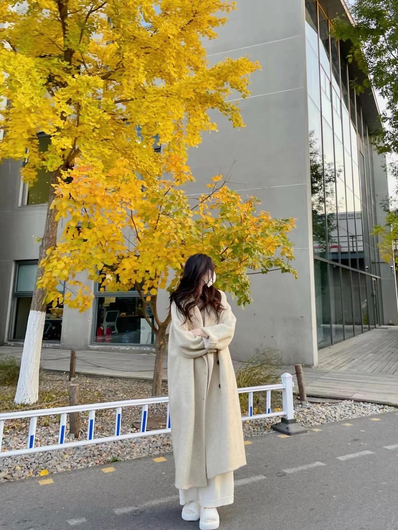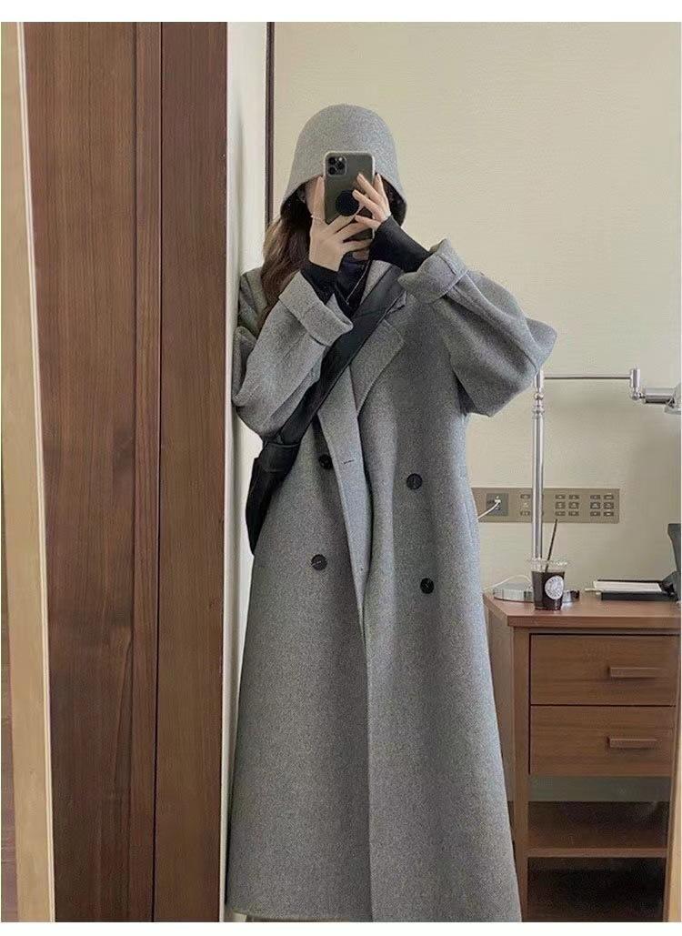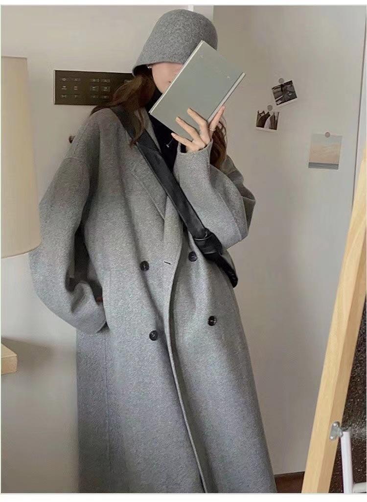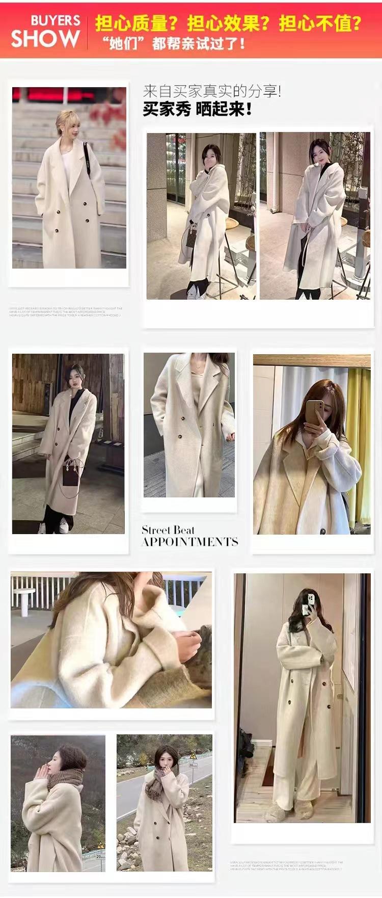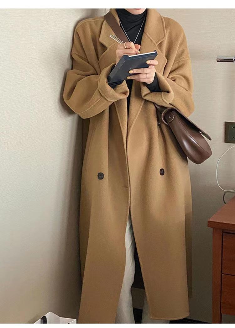 Abrigo de cachemira color avena para mujer, nuevo abrigo de invierno ajustado de alta gama 2024 para mujer, abrigo de lana de lana pequeña.