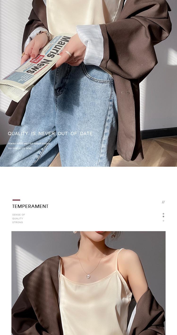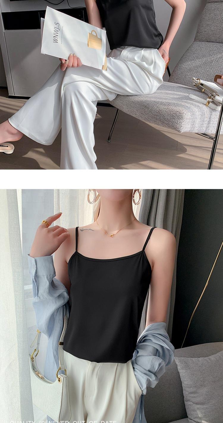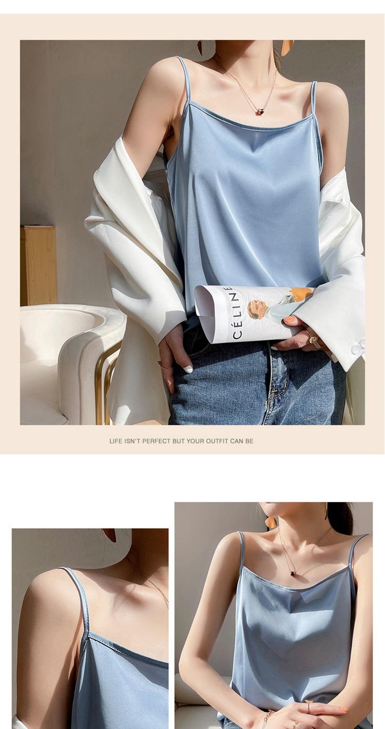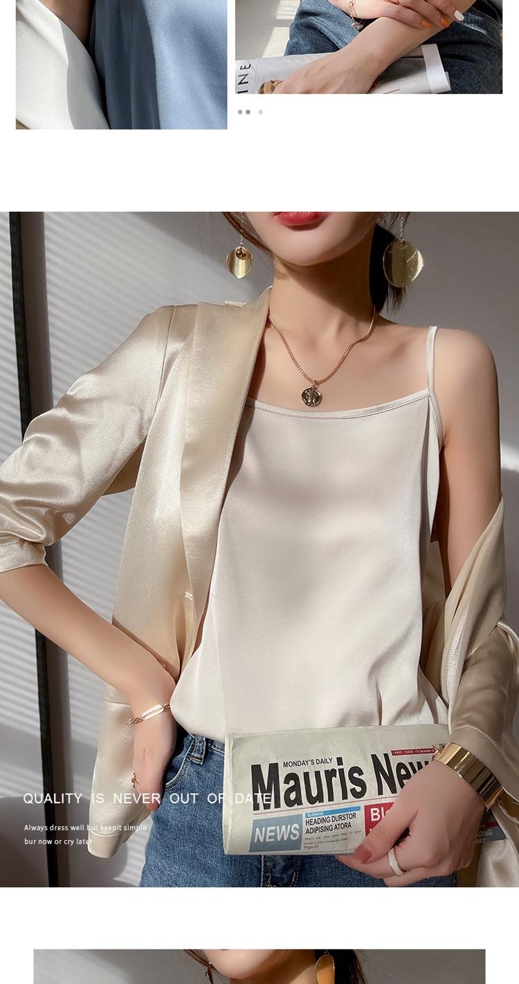 Camisola de seda para mujer, nueva llegada de primavera y verano, con un solo hombro, sin tirantes, prenda exterior, combinable con todo, base de traje multicolor.