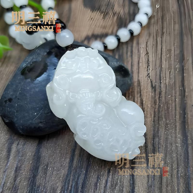 Colgante Pixiu de Jade Afgano Natural, Colgante de Jade Blanco Guanyin Buda, Jade Hetian Jade para Hombre y Mujer Venta al por Mayor