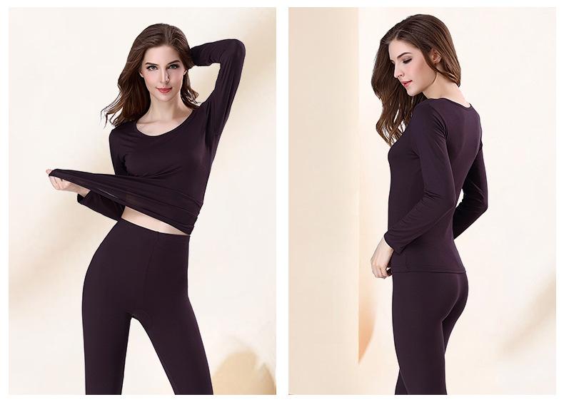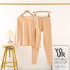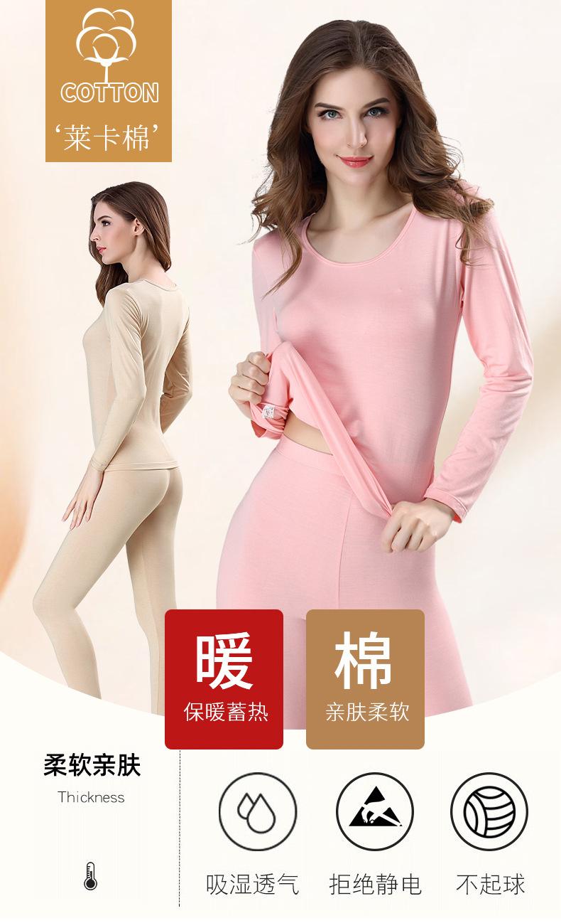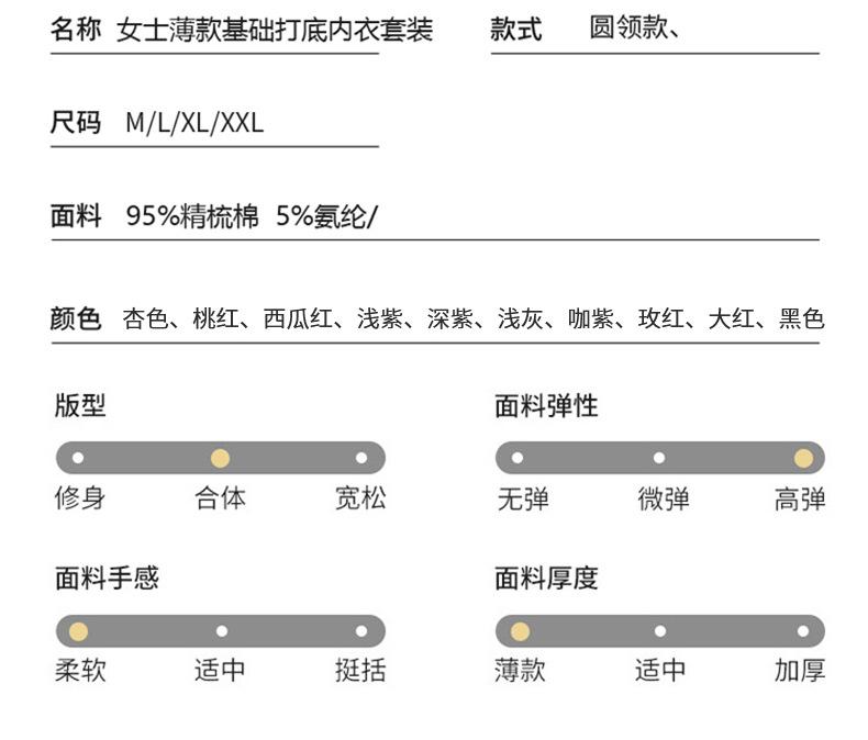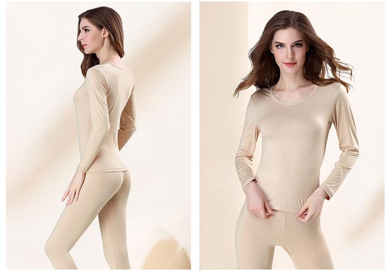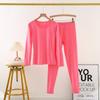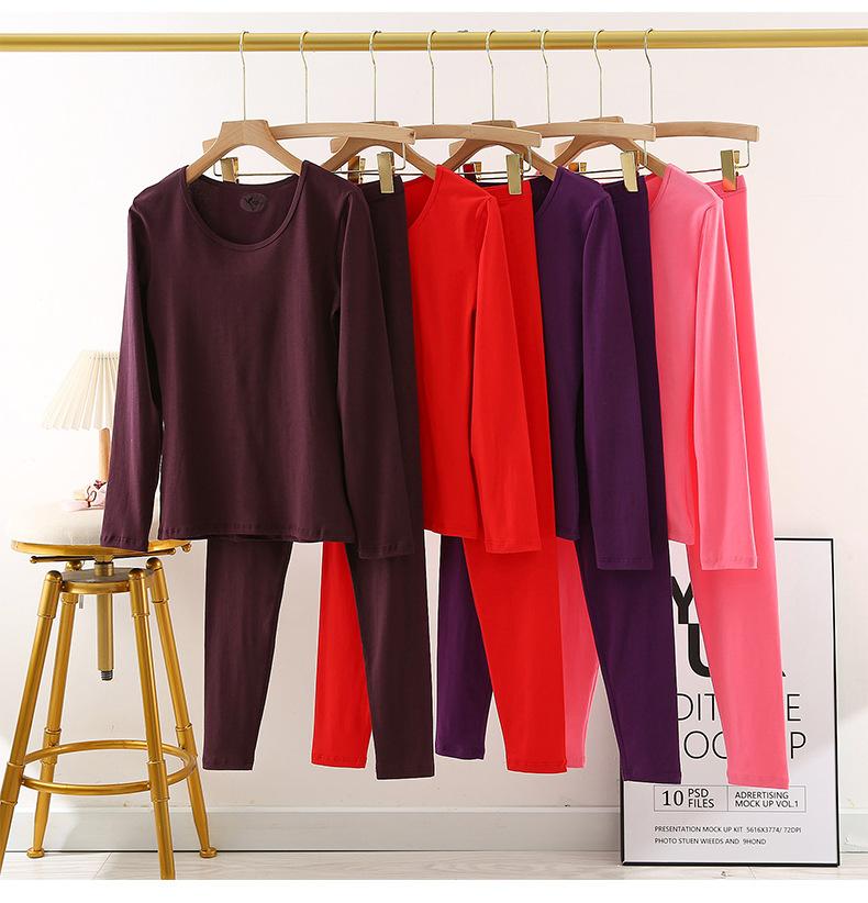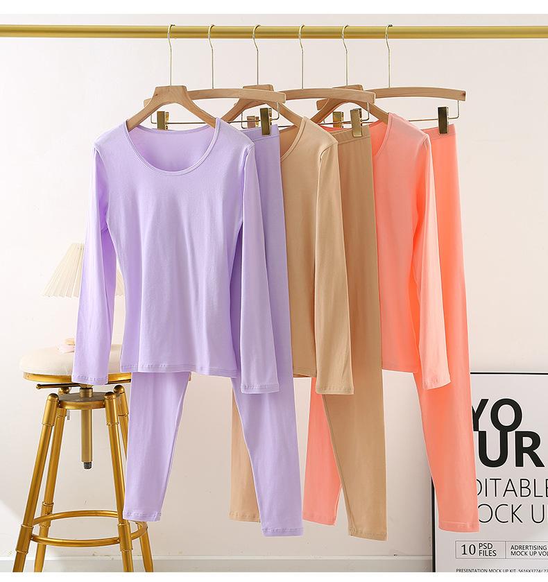 Calzoncillos largos de algodón puro para mujer, ropa interior fina, traje de otoño e invierno, ropa interior térmica ajustada de manga larga con cuello redondo