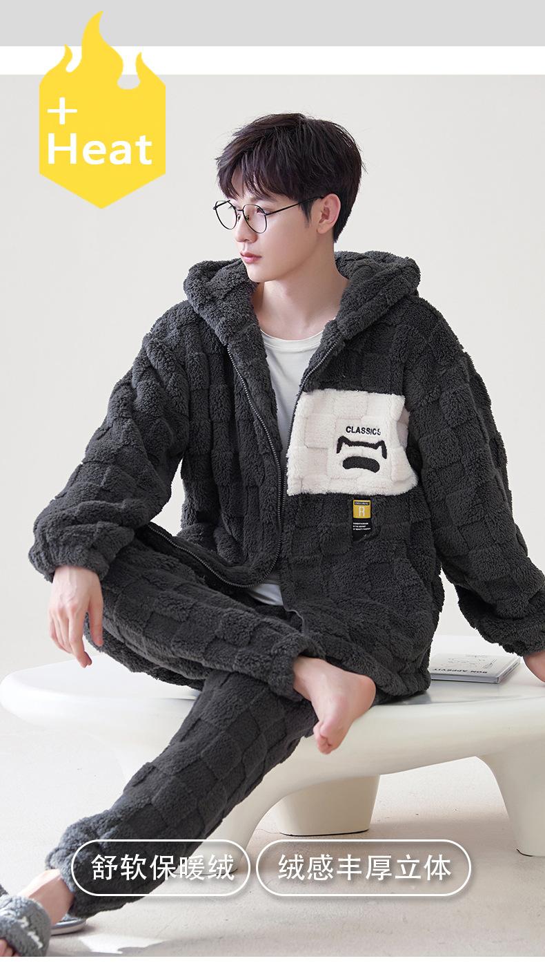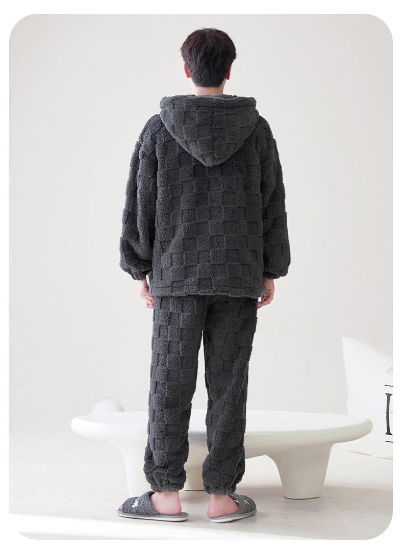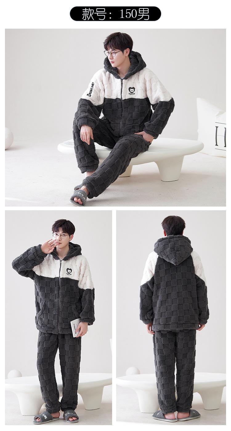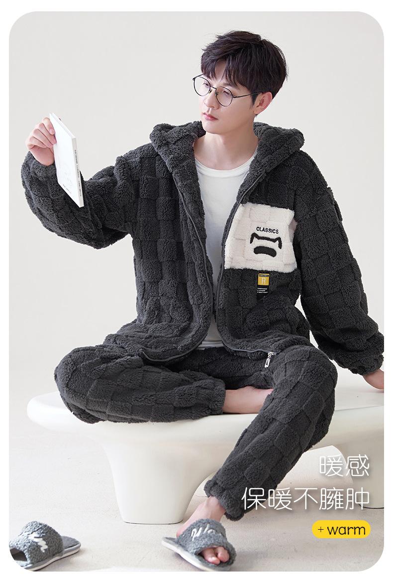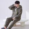 Pijamas de otoño e invierno para hombre, de forro polar coral, gruesos, cálidos, con capucha, de franela, holgados, de talla grande, para el hogar