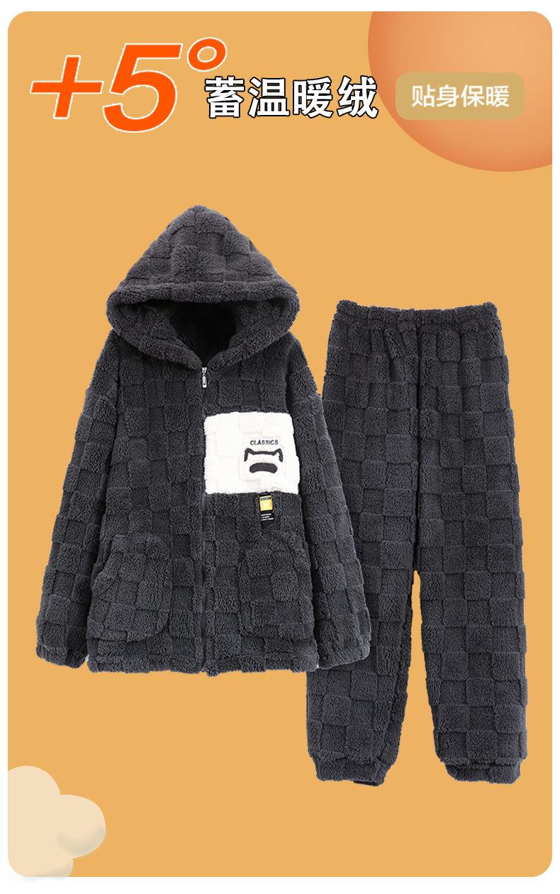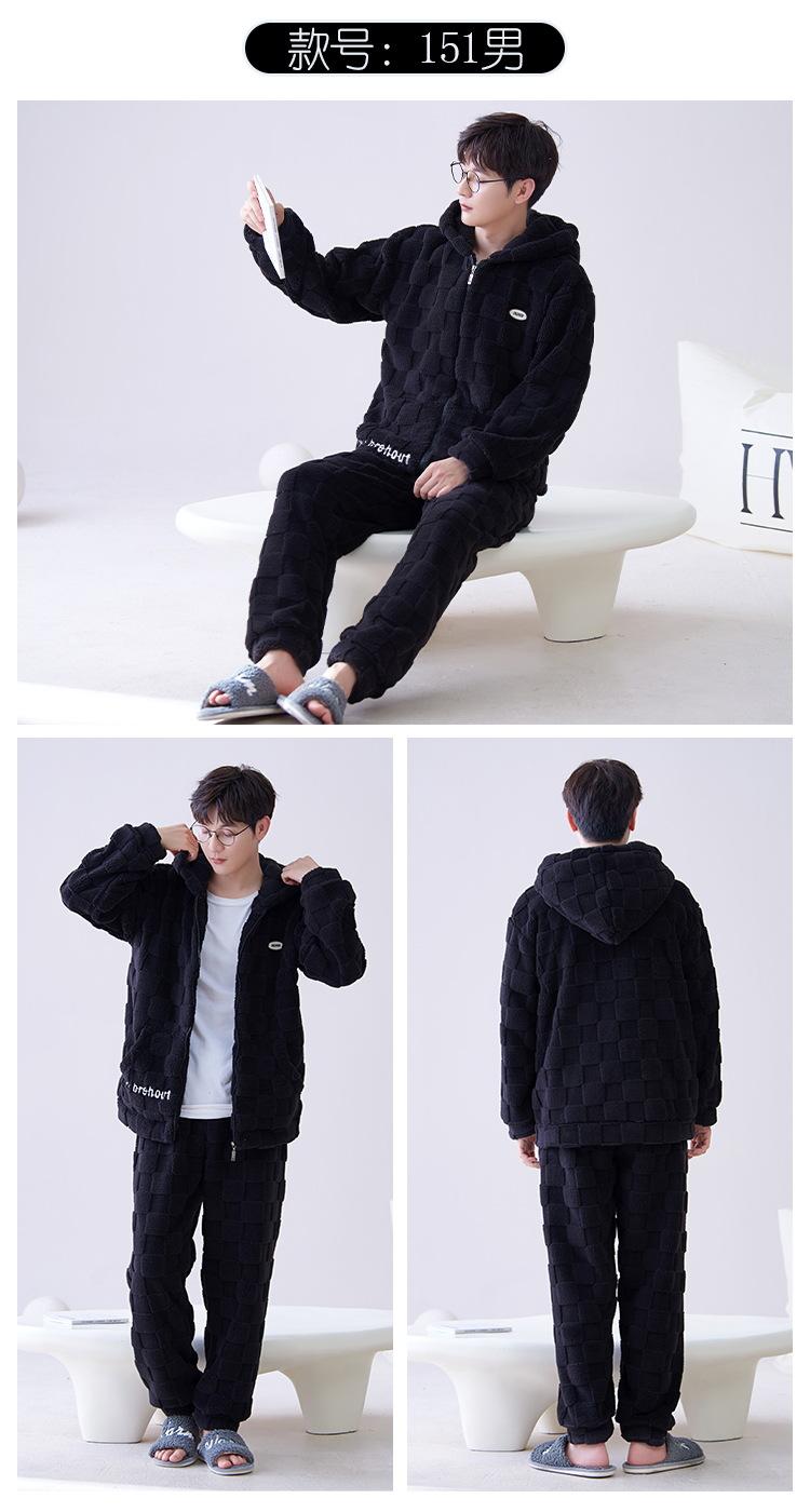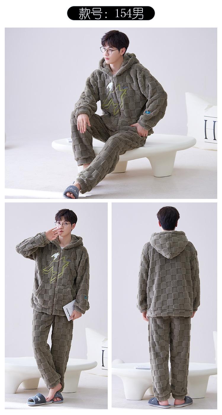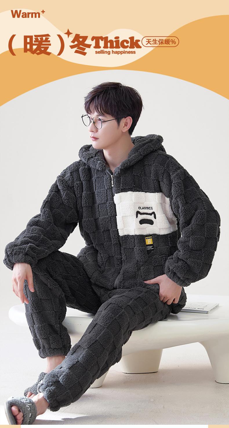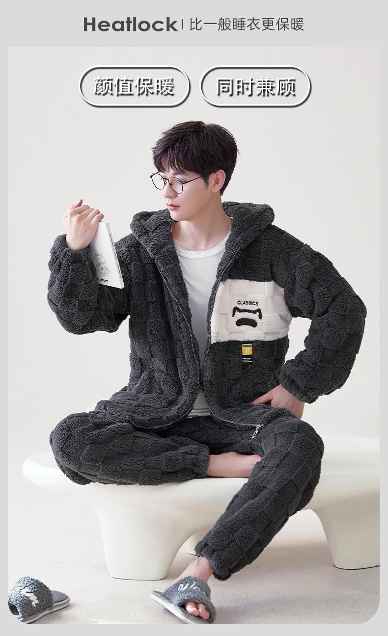 Pijamas de otoño e invierno para hombre, de forro polar coral, gruesos, cálidos, con capucha, de franela, holgados, de talla grande, para el hogar