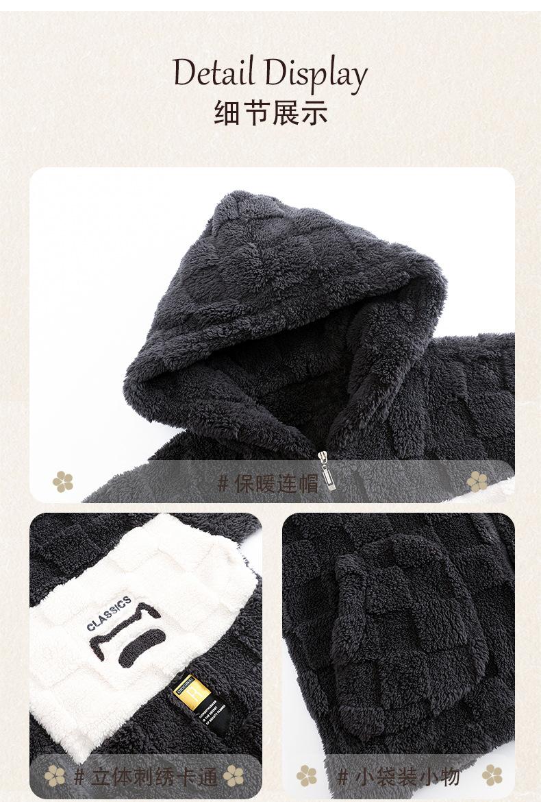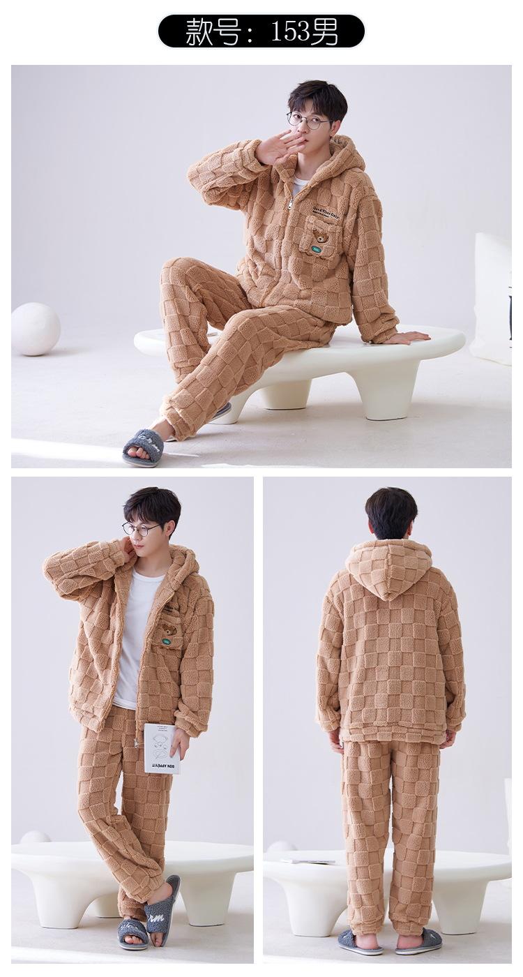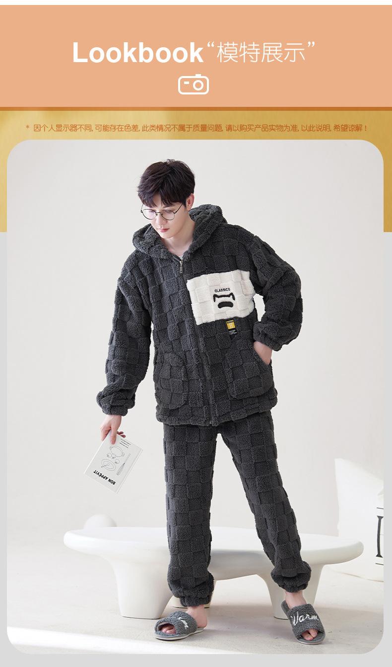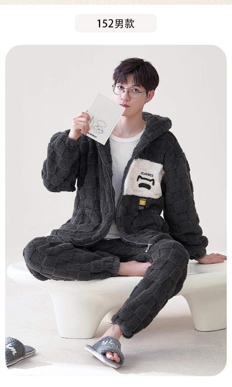 Pijamas de otoño e invierno para hombre, de forro polar coral, gruesos, cálidos, con capucha, de franela, holgados, de talla grande, para el hogar