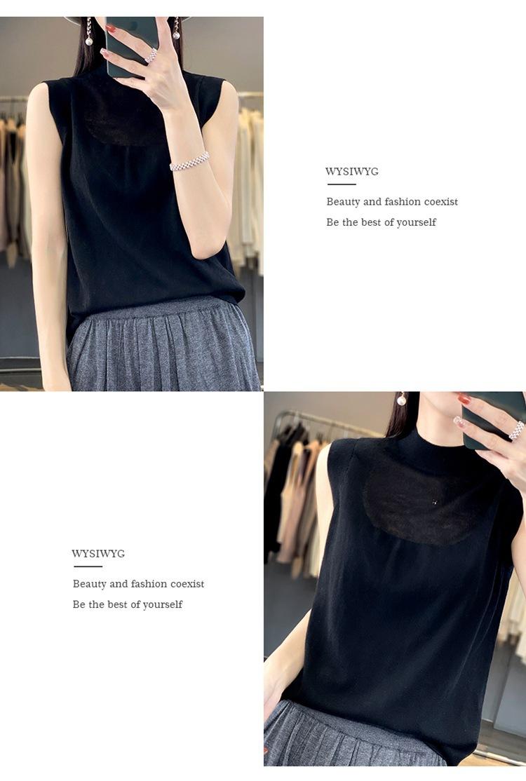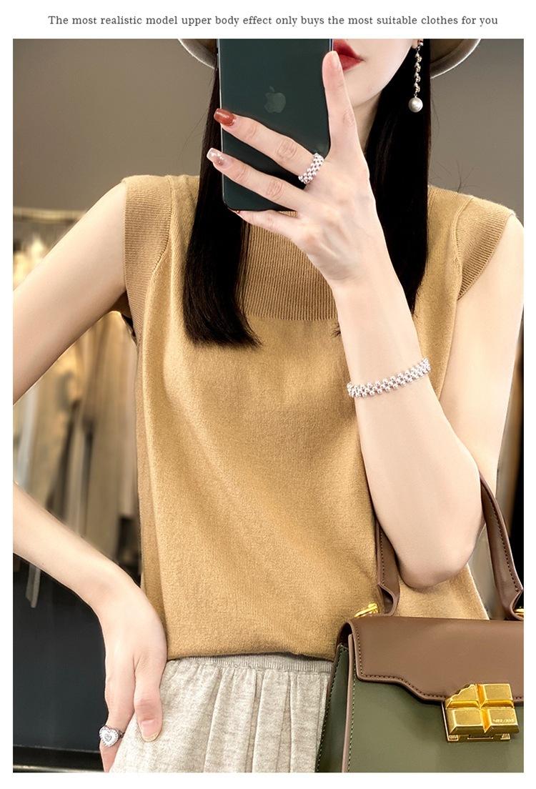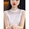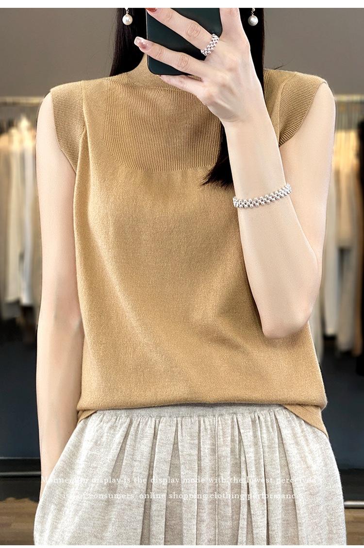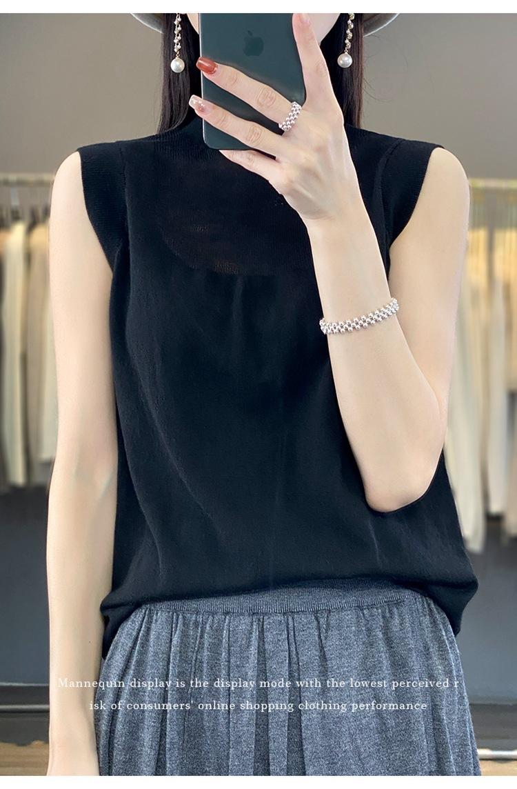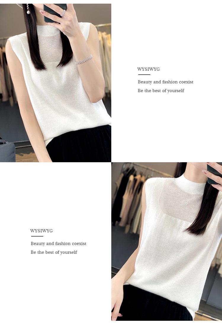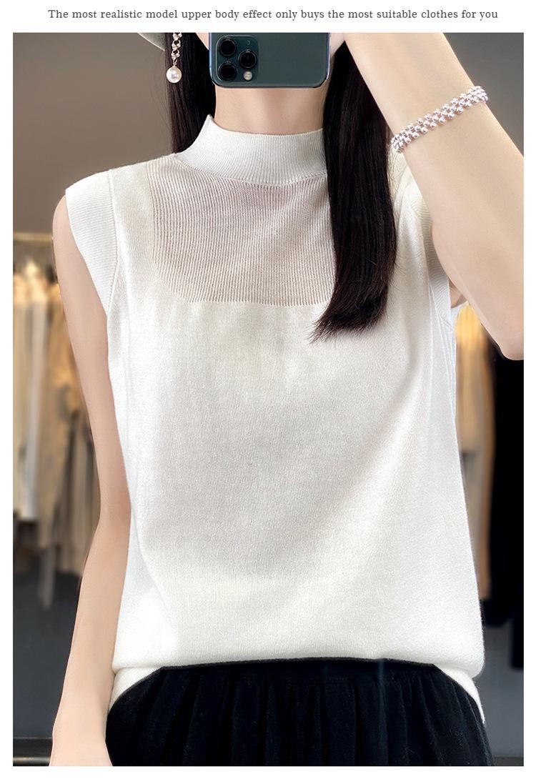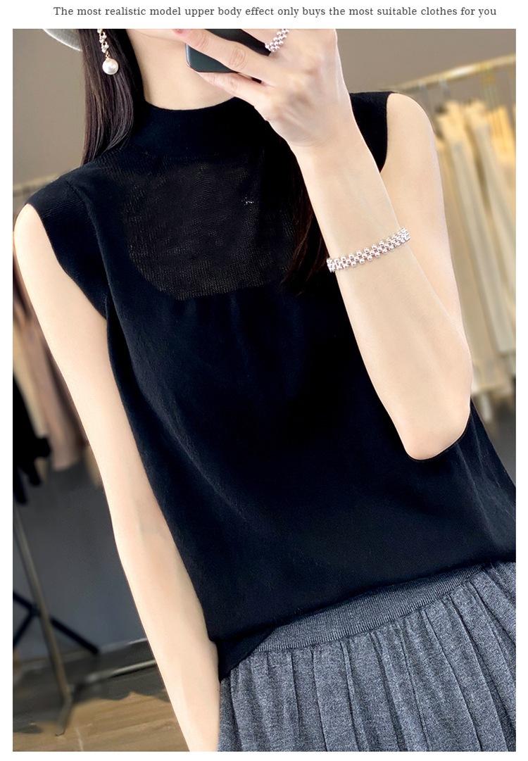 Chaleco de punto de lana fina de imitación fina para mujer, novedad de verano de 2024, chaleco sin mangas con cuello alto y hueco, moda interior.