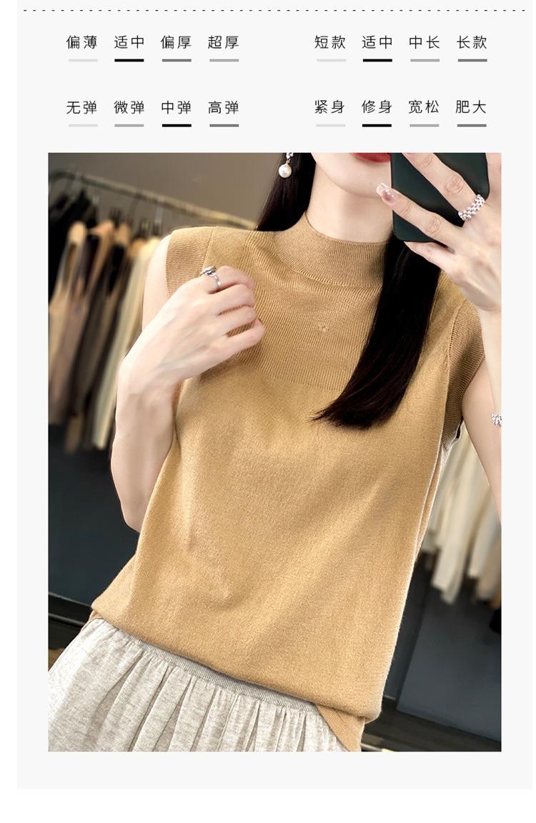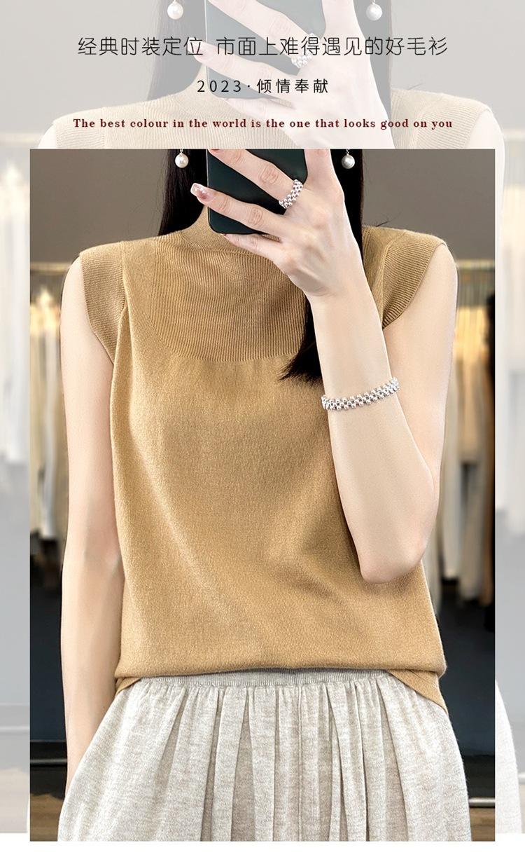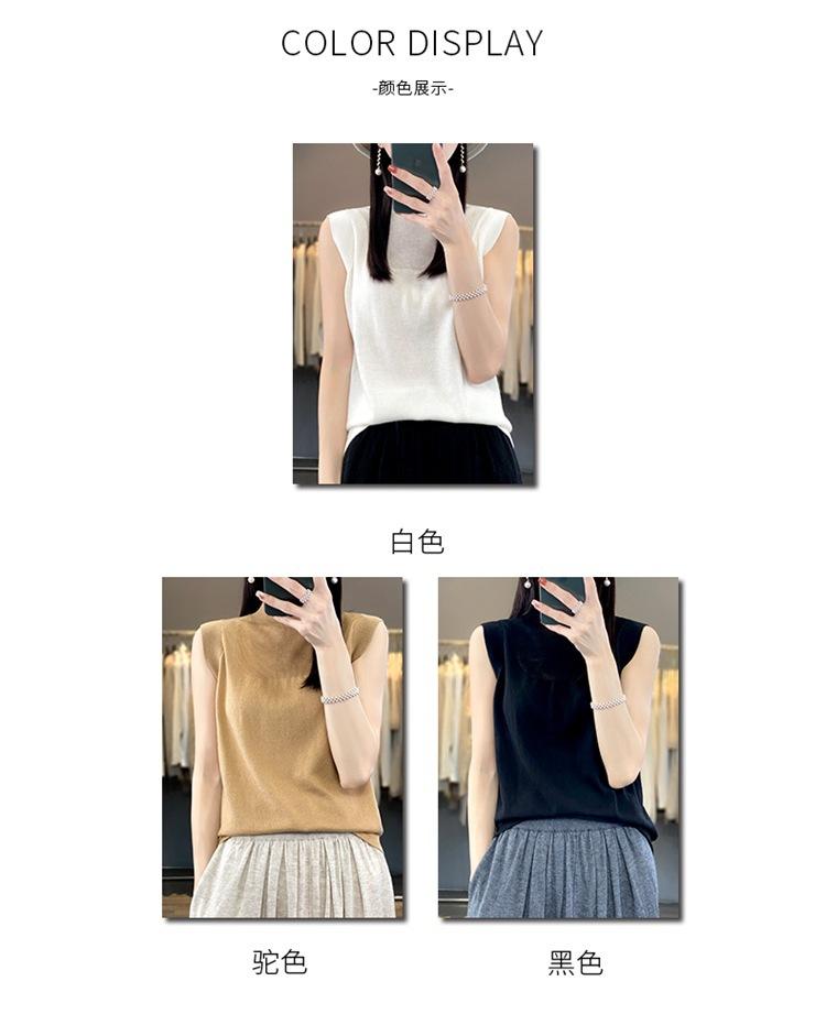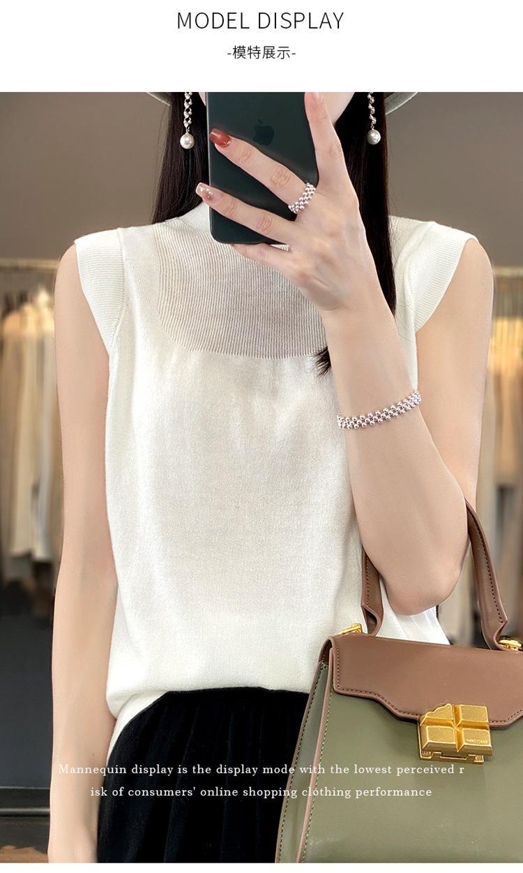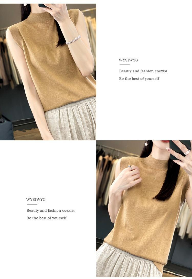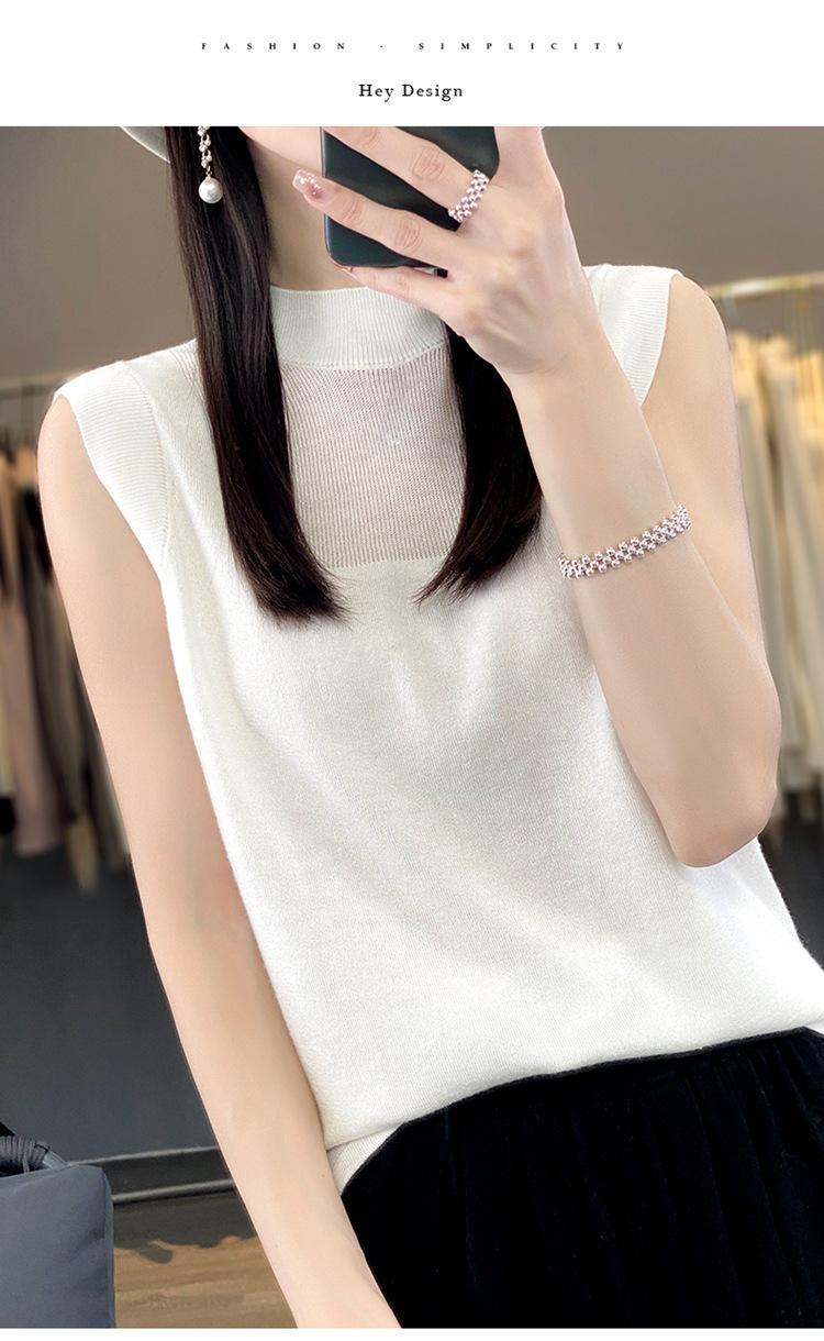 Chaleco de punto de lana fina de imitación fina para mujer, novedad de verano de 2024, chaleco sin mangas con cuello alto y hueco, moda interior.