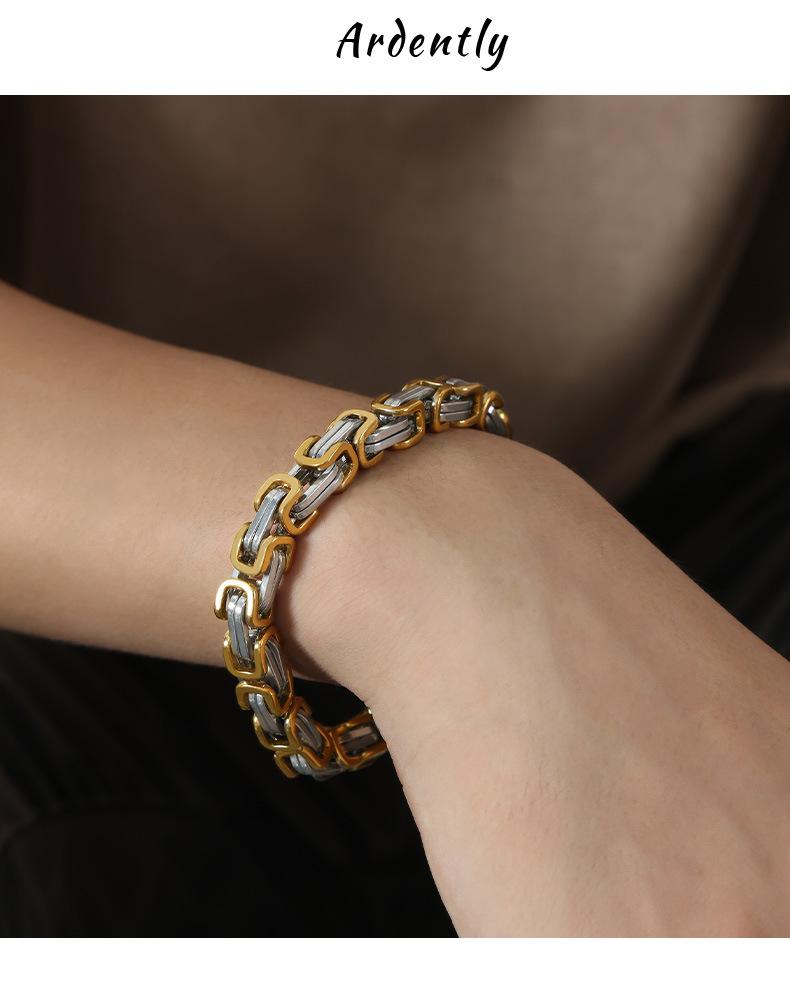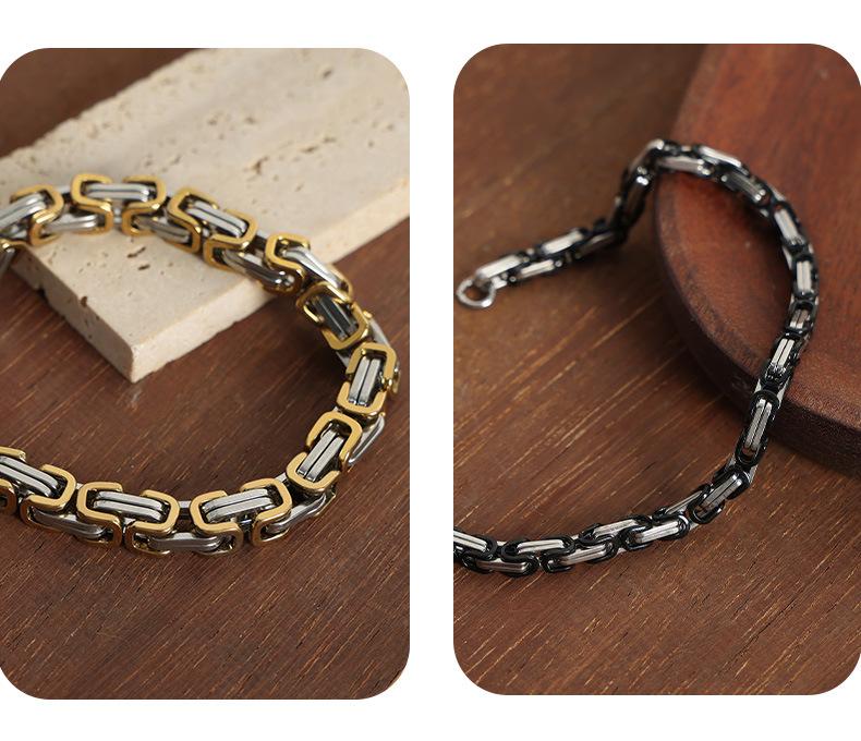 Pulsera retro nicho simple personalidad moda todo-combinable joyería diseño geométrico de costura de cadena color acero titanio dorado