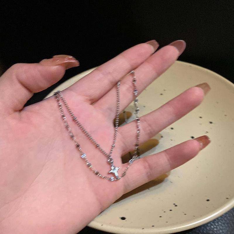 Collar fino con cruz de alta calidad para mujer, primavera y verano, sencillo, de doble capa, accesorios de vestir apilados, diseño de nicho de lujo ligero, cadena de clavícula de moda.
