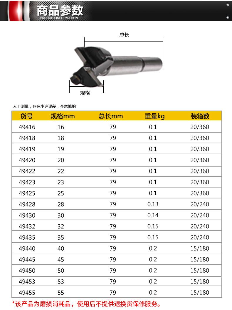 Adecuado para abrir agujeros en varias maderas macizas duras, tableros prensados, productos de madera, plásticos, madera contrachapada y otros materiales.
