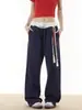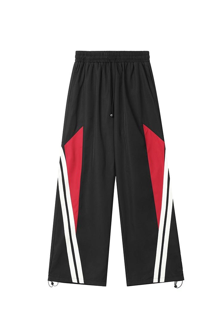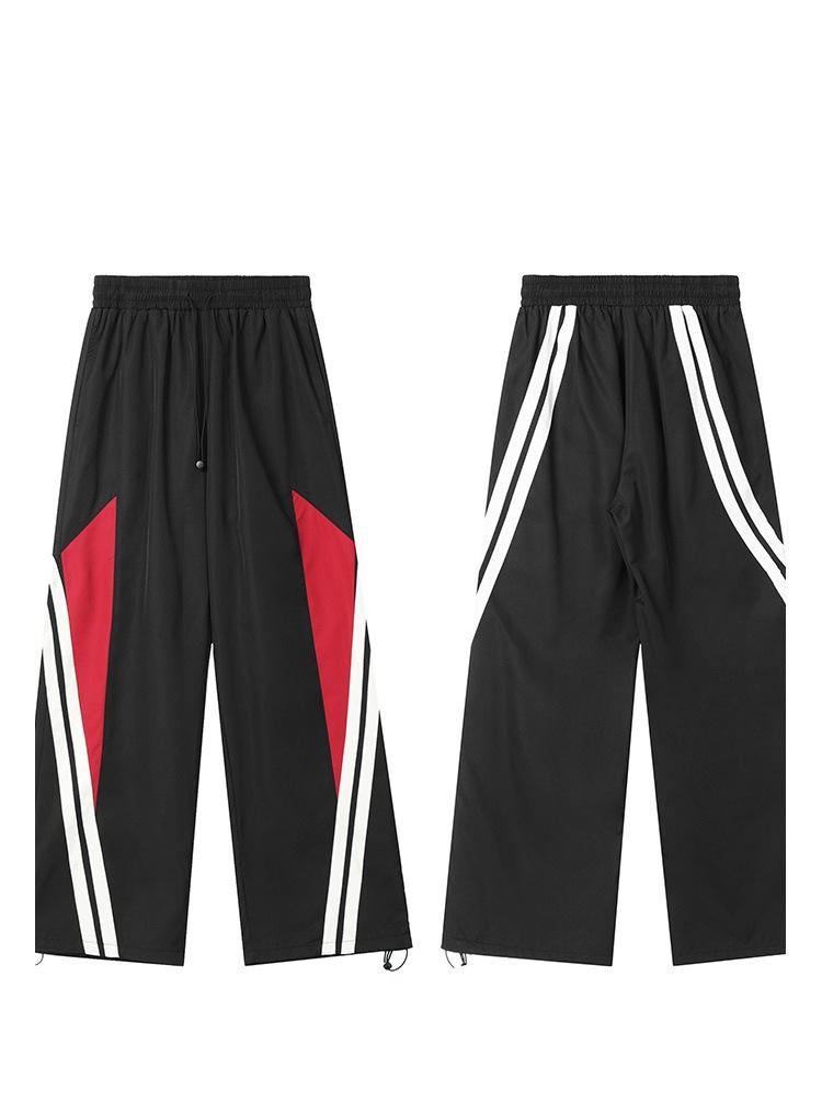 Pantalones casuales con costuras de rayas irregulares retro Pantalones deportivos rectos de diseño de calle estadounidense para mujer Pantalones para hombre