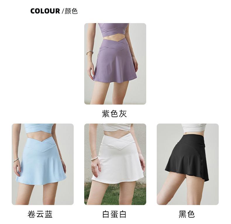 Falda de yoga de dos piezas con cintura falsa de verano para mujer, para exteriores, con cobertura de cadera, ligera, anti-correr, informal, de una pieza, para tenis