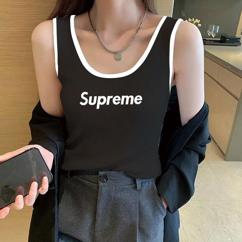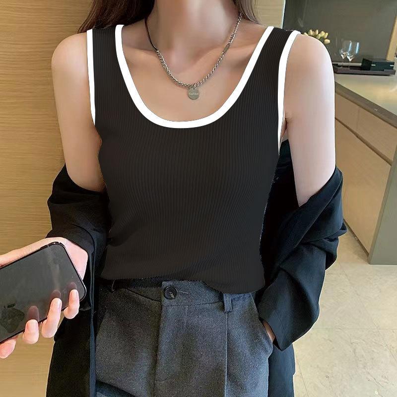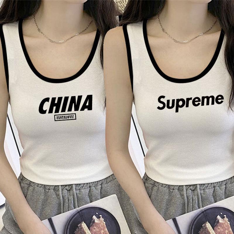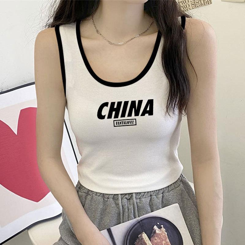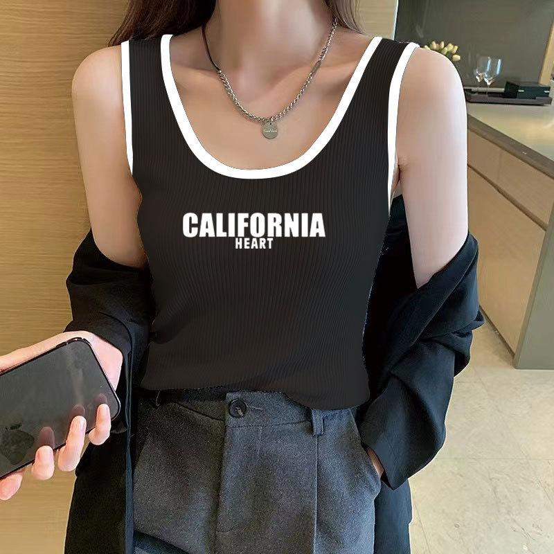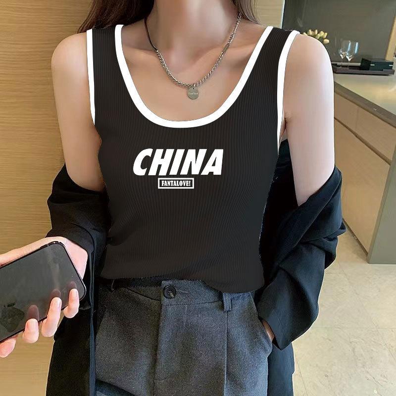 2023 Nueva Llegada Chaleco de Tirantes Estampado con Hilo para Mujer Talla Grande Ajustado Ropa Exterior Interior Antirozaduras sin Mangas Camiseta Básica