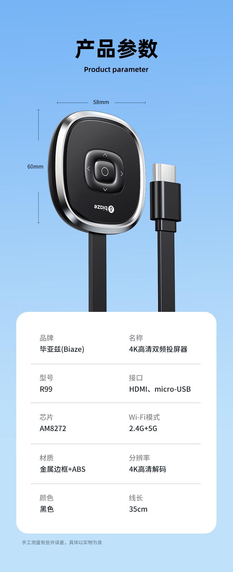 Proyector de pantalla inalámbrico para teléfono móvil Biaz 4K HD, conexión doméstica, proyector de TV, mismo dispositivo de pantalla horizontal y vertical R99