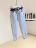Jeans Azul Claro Verano 2024 Delgados Cintura Alta Jeans de Papá Holgados Look Adelgazante Pies Pequeños Pantalones Harem Zanahoria