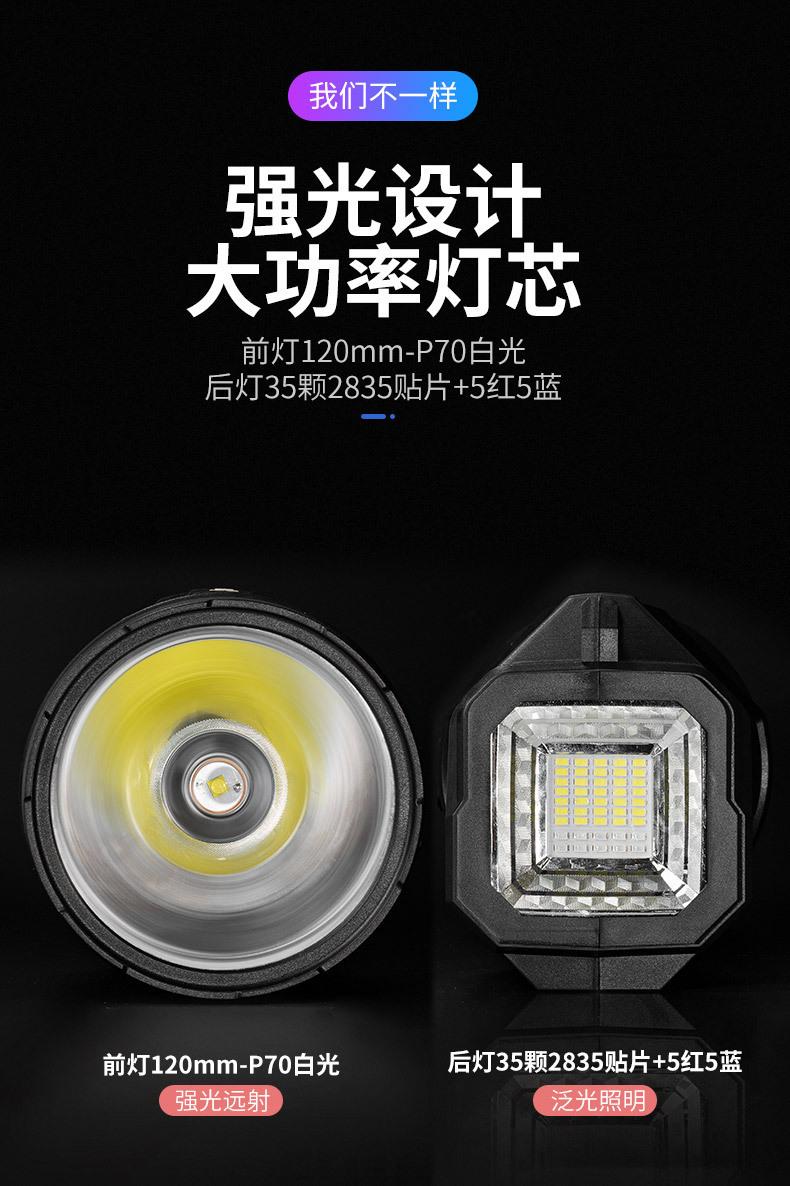 Linterna LED para exteriores de luz fuerte, linterna de emergencia para camping, bandolera recargable, patrulla de incendios, pesca, reflector de búsqueda, venta al por mayor