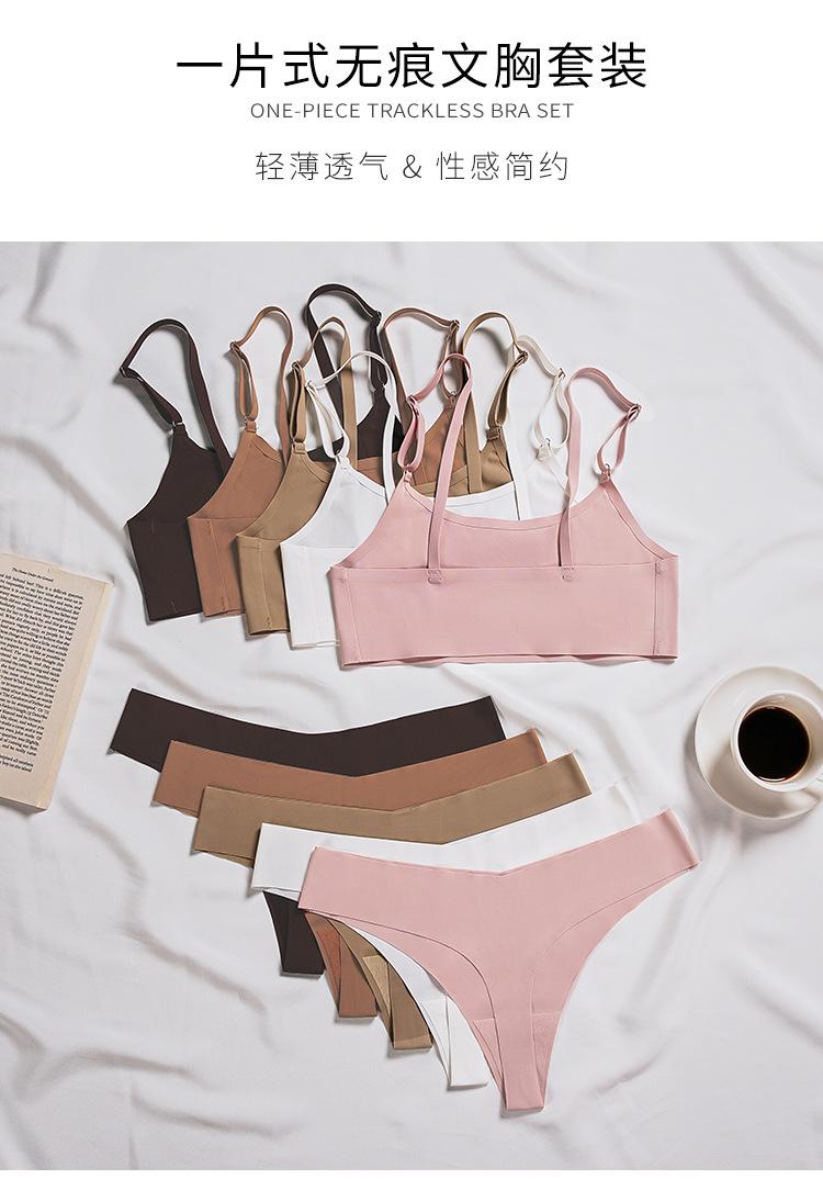 Traje de sujetador sin costuras sexy europeo y americano para mujer, camisola de pecho pequeño fruncido sin aro de acero, traje de ropa interior transpirable para mujer