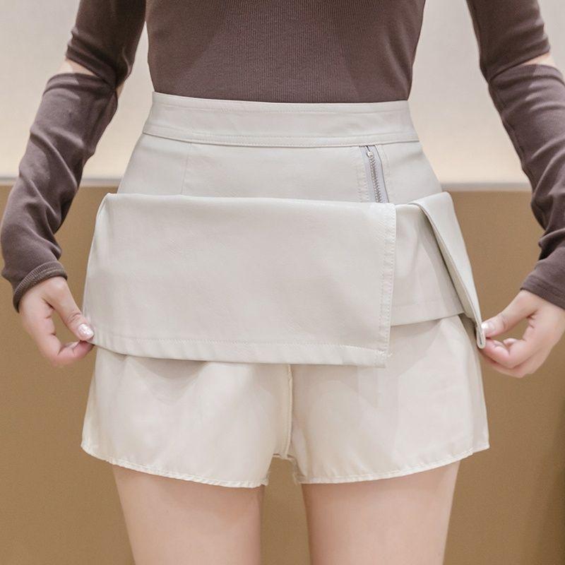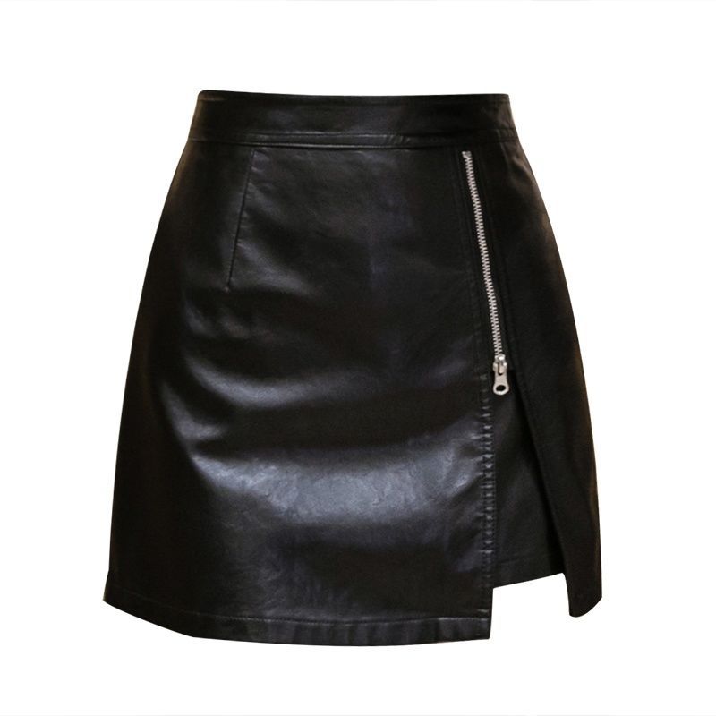 Falda de Cuero Negra Falda para Mujer Otoño 2022 Nueva Cintura Alta Irregular Slim Línea A Falda de Cadera Falda con Abertura