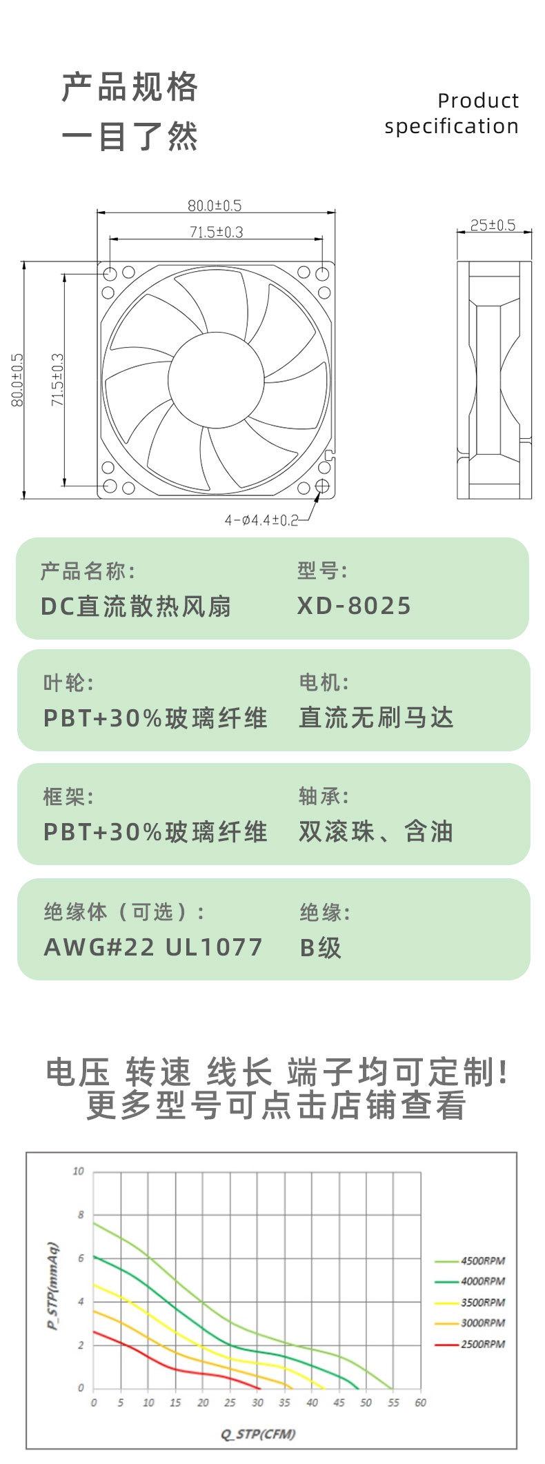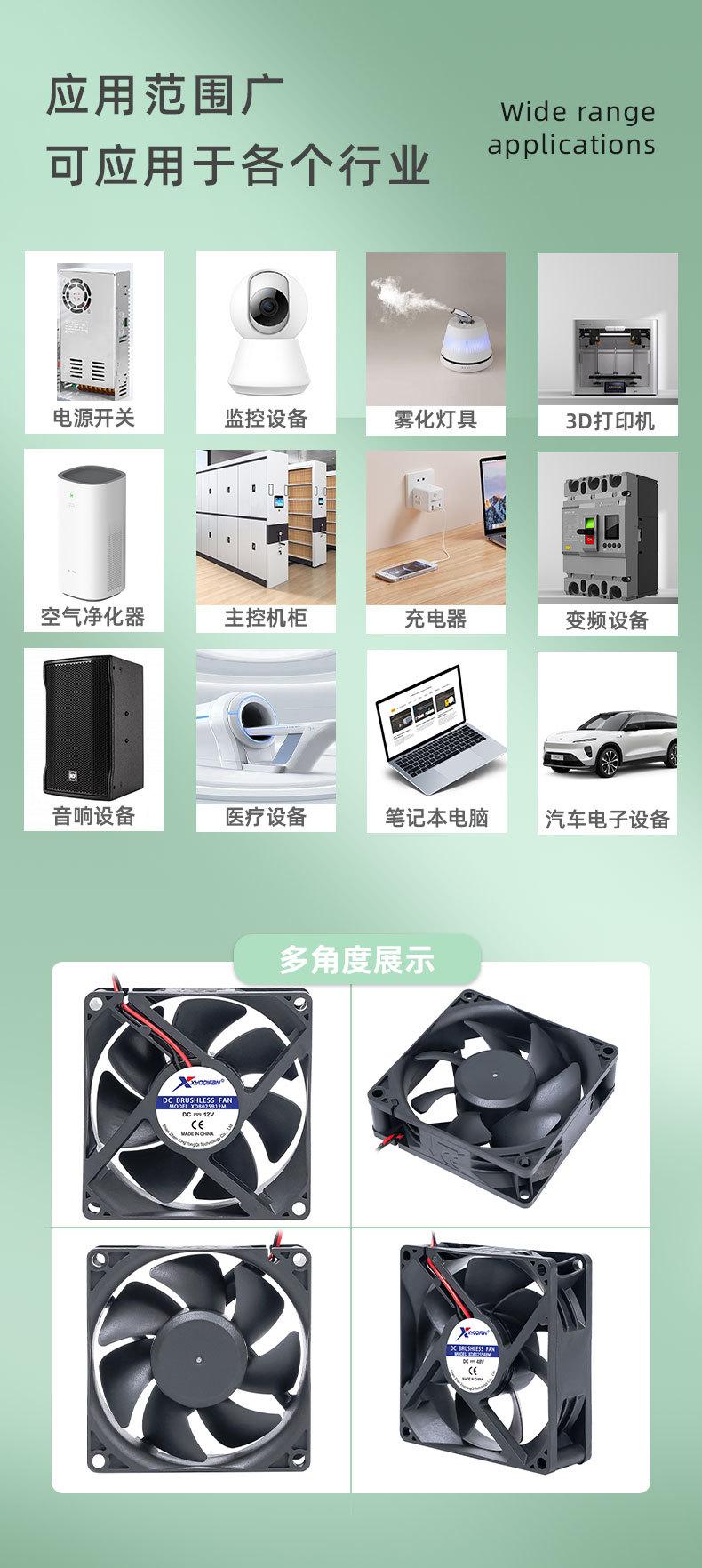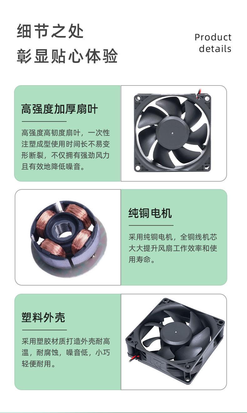 Suministro Directo de Fábrica 8025 Ventilador de Refrigeración Doble Bola 12V24V Chasis Inversor Ventilador Doble Bola CC
