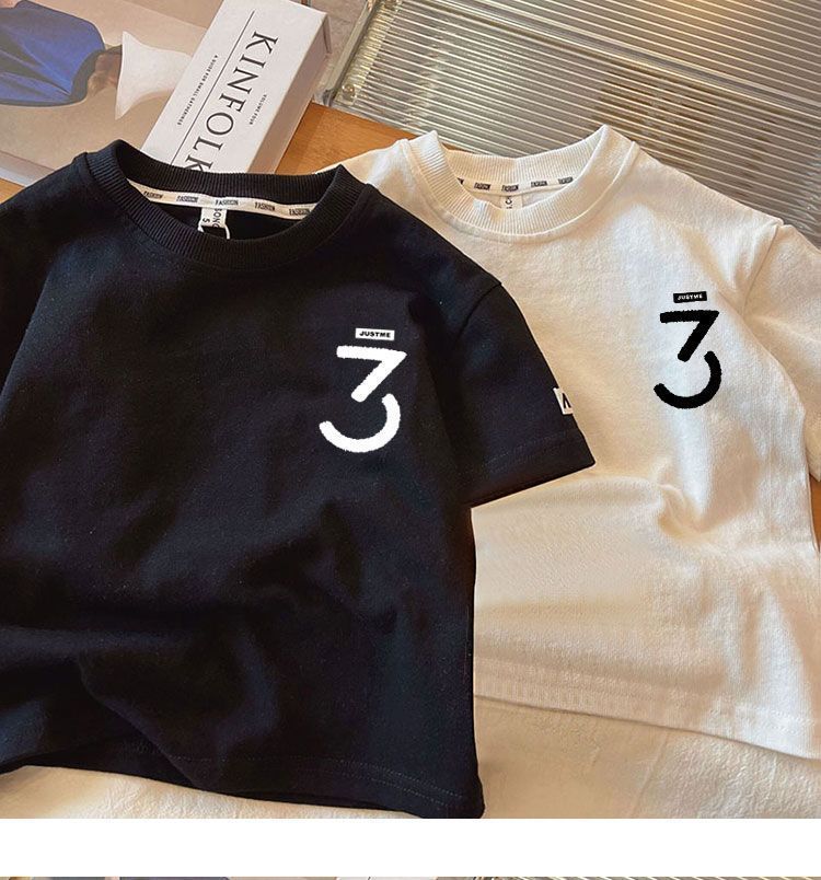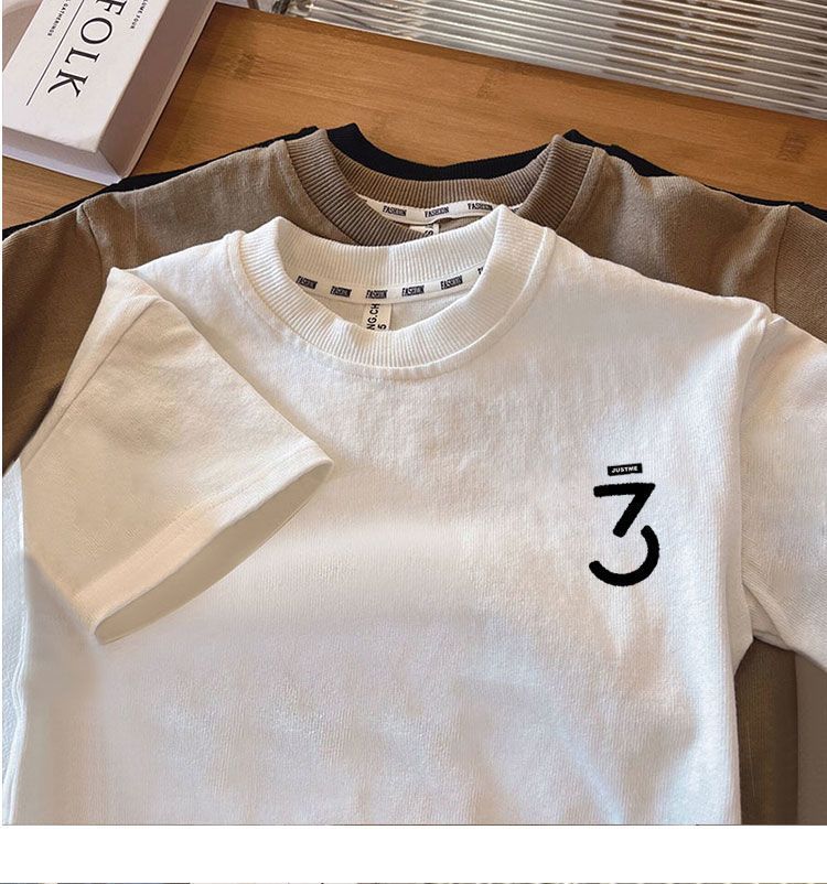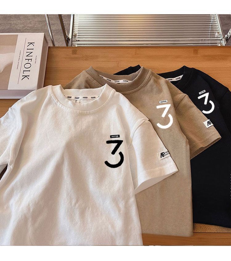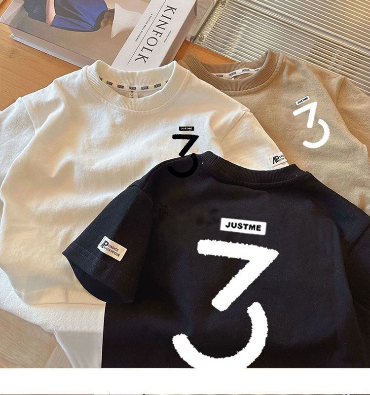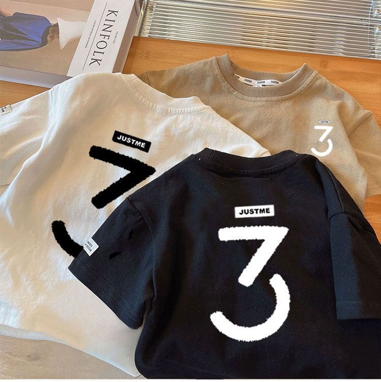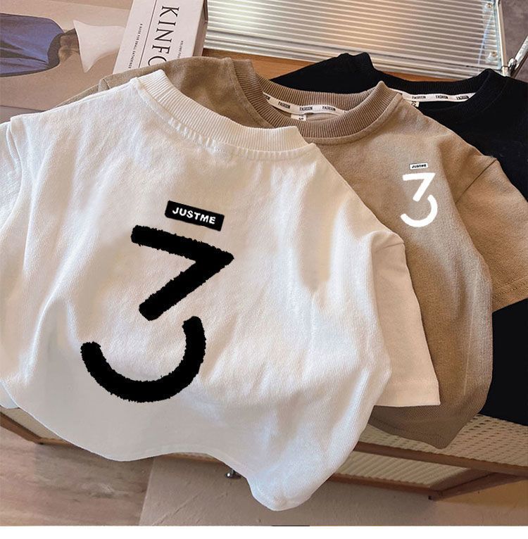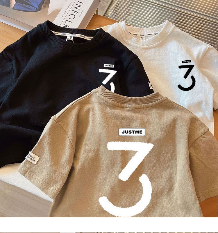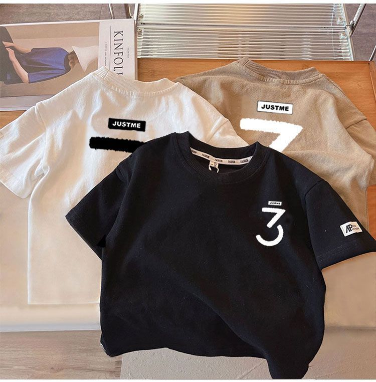 Camiseta de manga corta para niño, de algodón puro, moderna, fresca, de verano, fina, elegante, estilo coreano, de media manga para niños pequeños y medianos.
