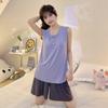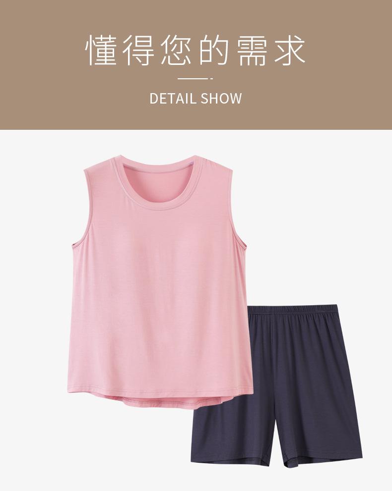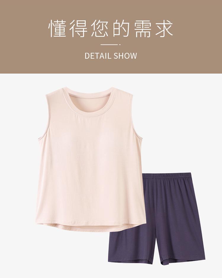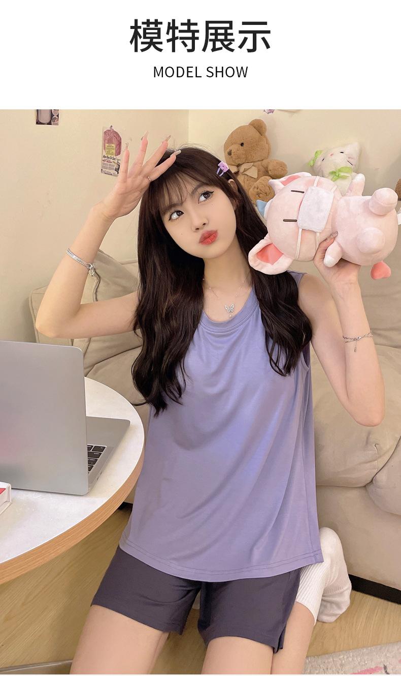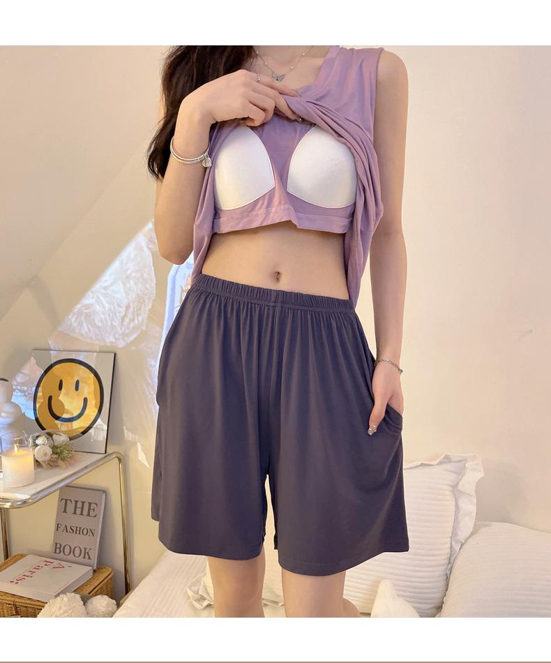 Pijama con almohadilla para el pecho para mujer, chaleco de verano, pantalones cortos, ropa informal holgada, sin mangas, color sólido, ropa para el hogar, traje deportivo