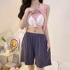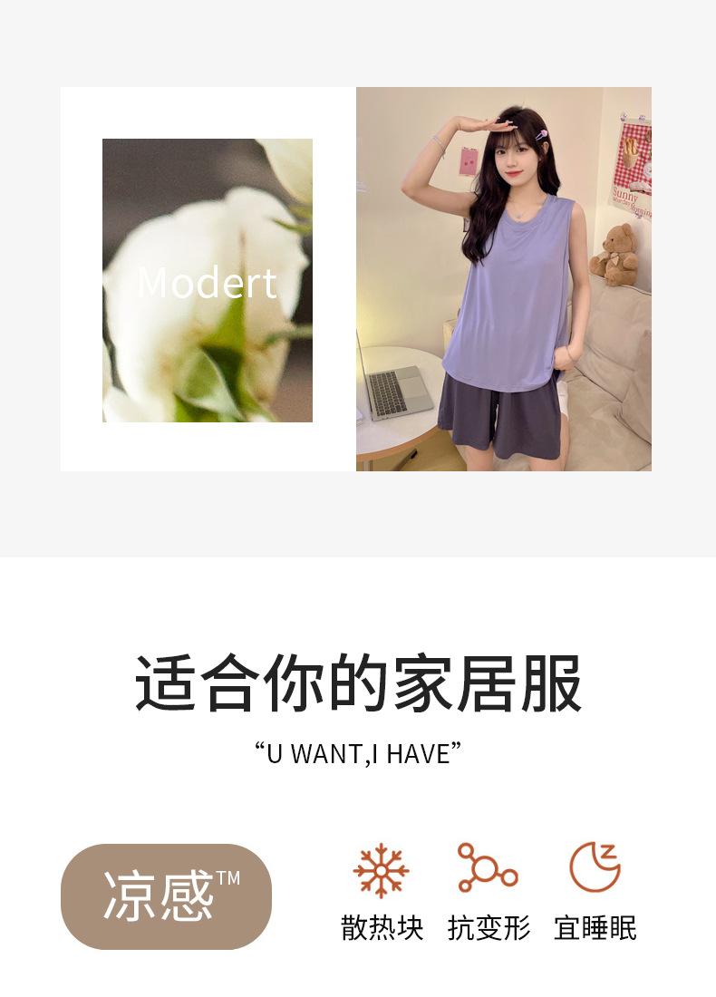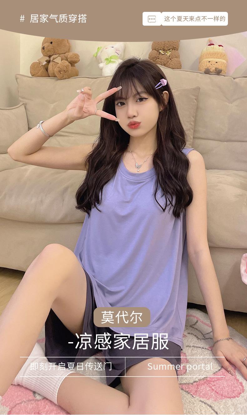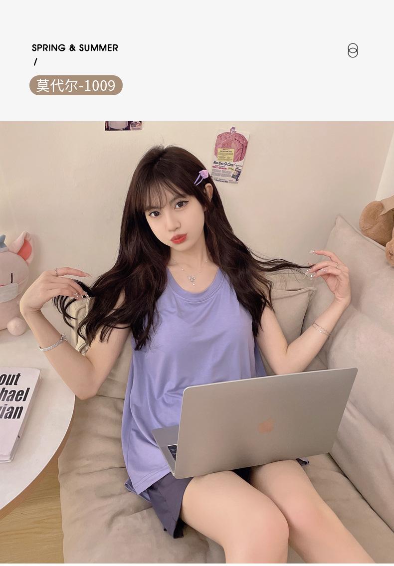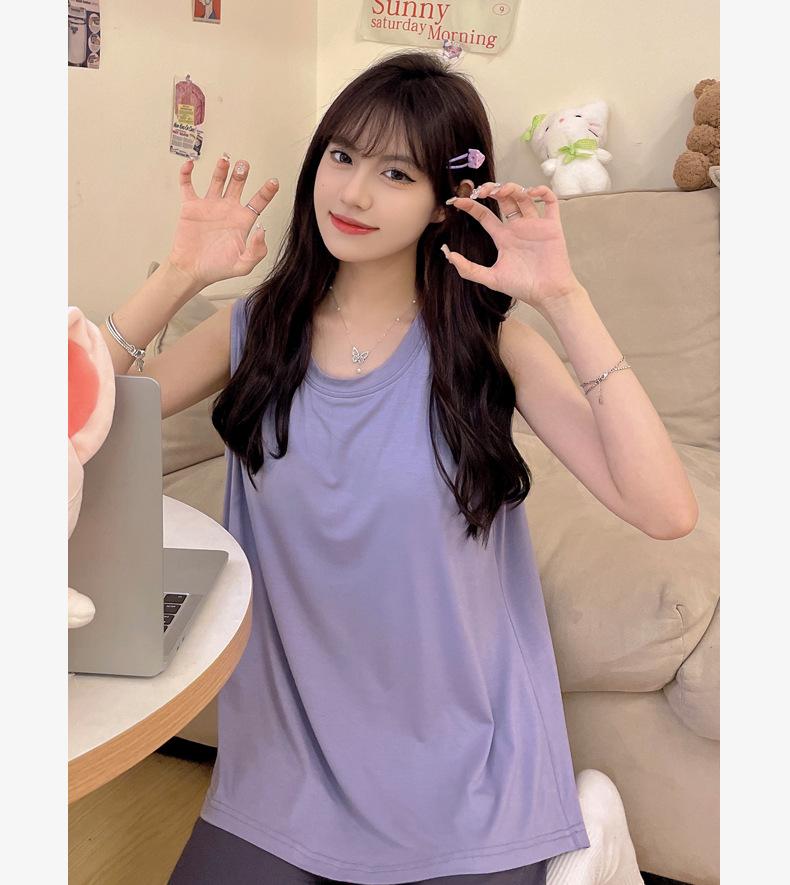 Pijama con almohadilla para el pecho para mujer, chaleco de verano, pantalones cortos, ropa informal holgada, sin mangas, color sólido, ropa para el hogar, traje deportivo