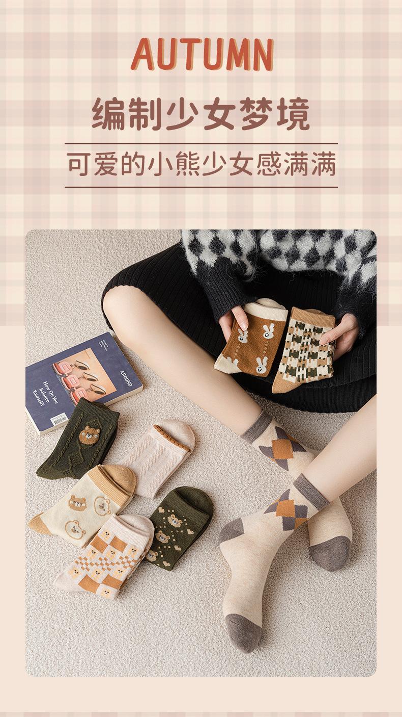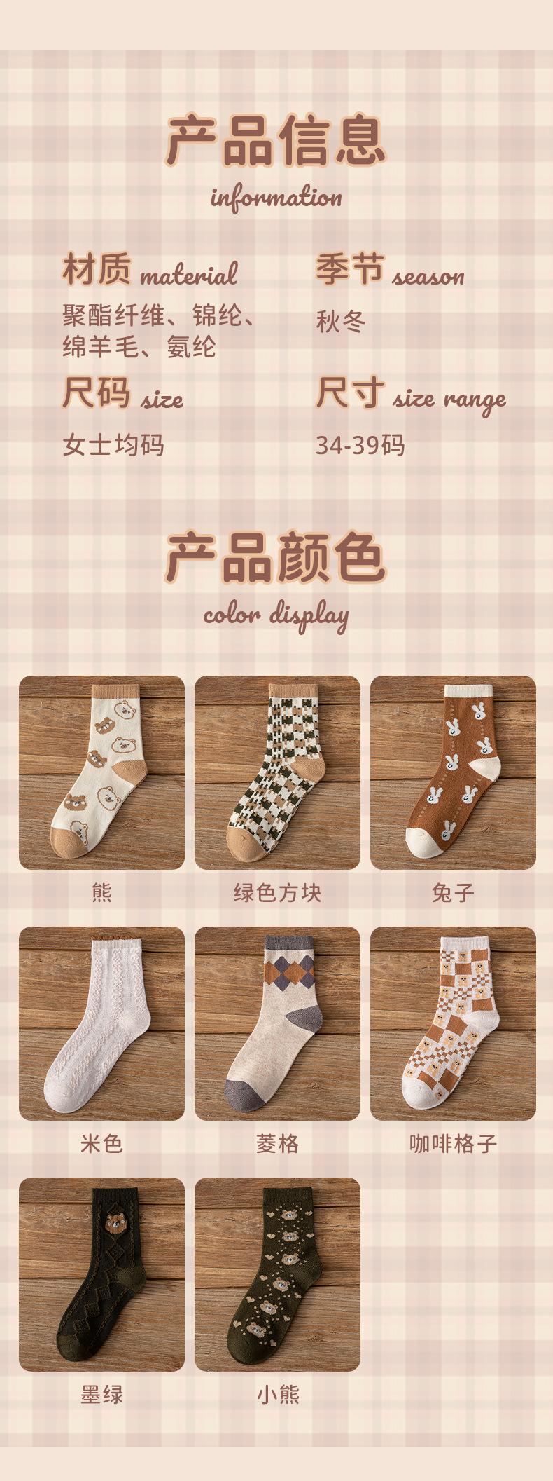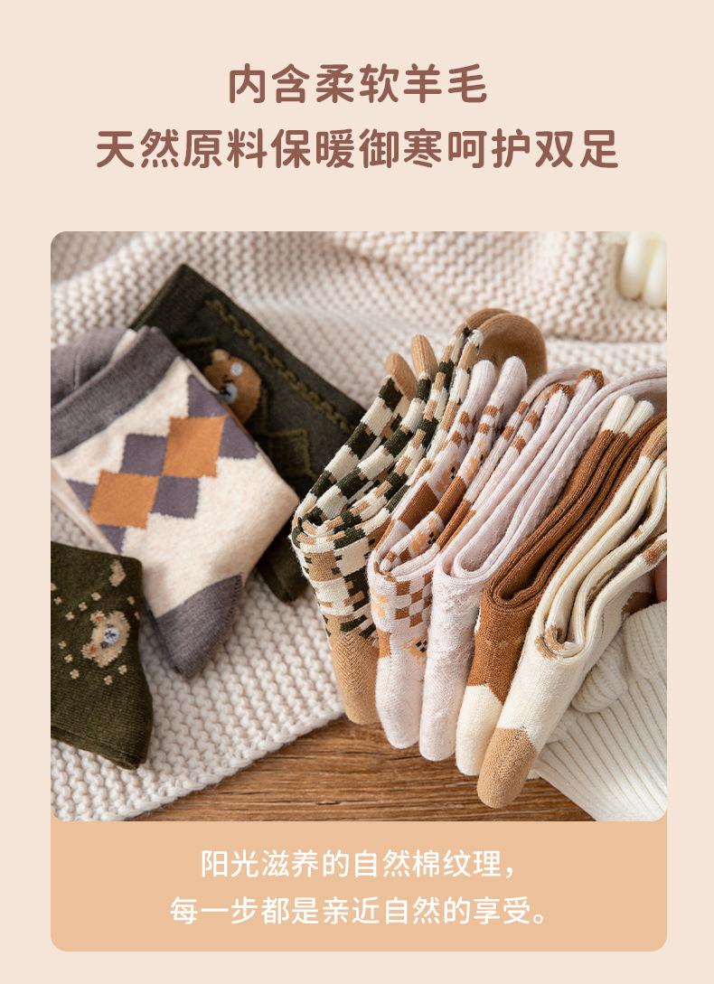 Calcetines de Mujer para Otoño e Invierno, Calcetines de Lana Gruesos y Cálidos, Calcetines de Moda Estilo Coreano, Calcetines hasta la Mitad de la Pantorrilla, Calcetines de Mujer Jacquard de Oso de Dibujos Animados al por Mayor