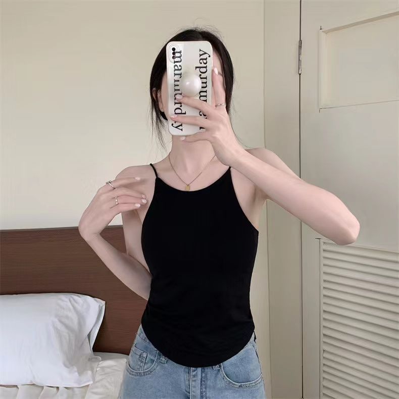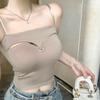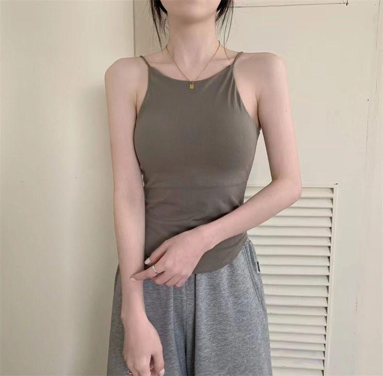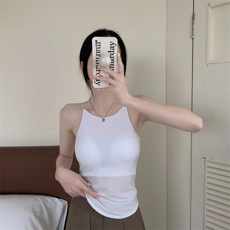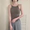 Chaleco de tirantes con copa fija integrada en la espalda de chica sexy de color sólido con almohadilla para el pecho, top de tubo corto sexy para mujer