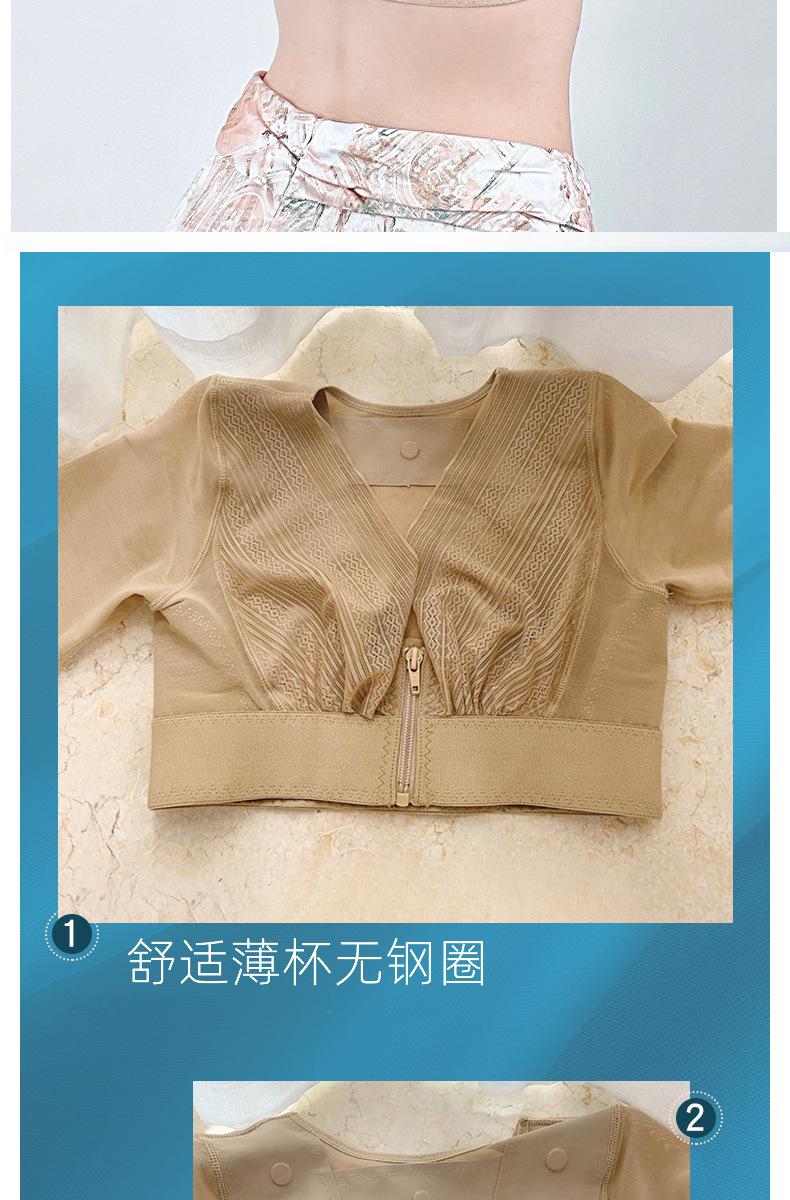 - Brasier con cremallera frontal, Mangas cortas, Sin aros, Copa delgada con soporte para el busto, Antiflacidez, Expansión externa, Brasier ajustable
