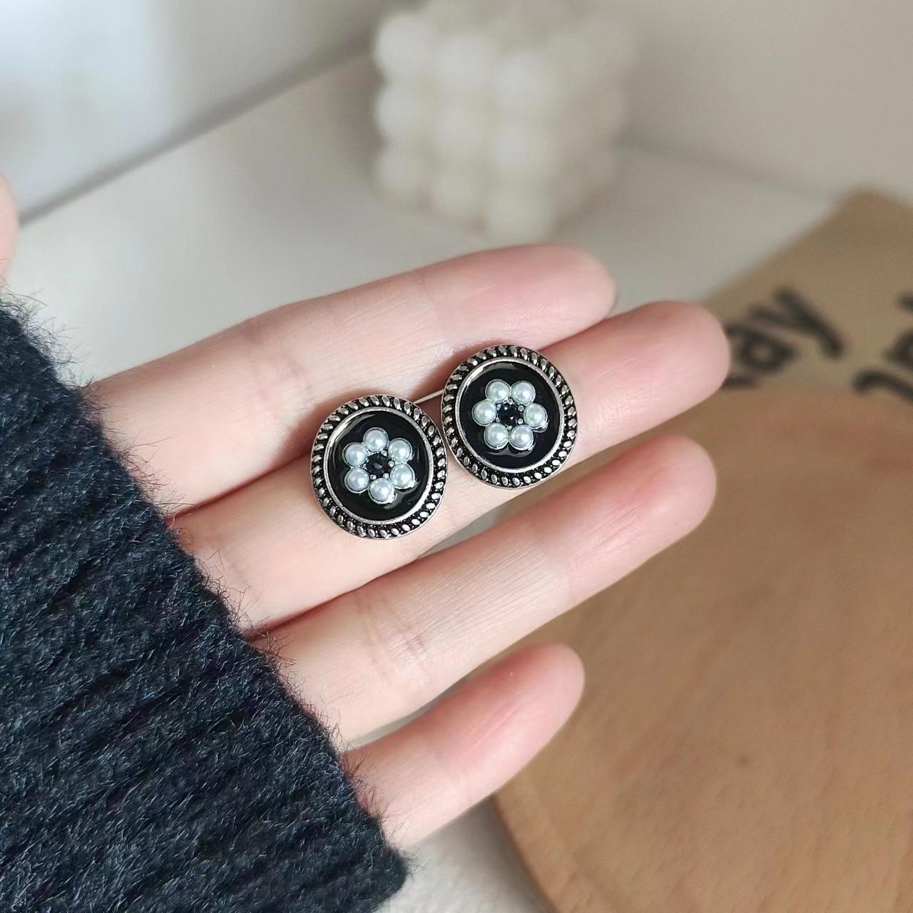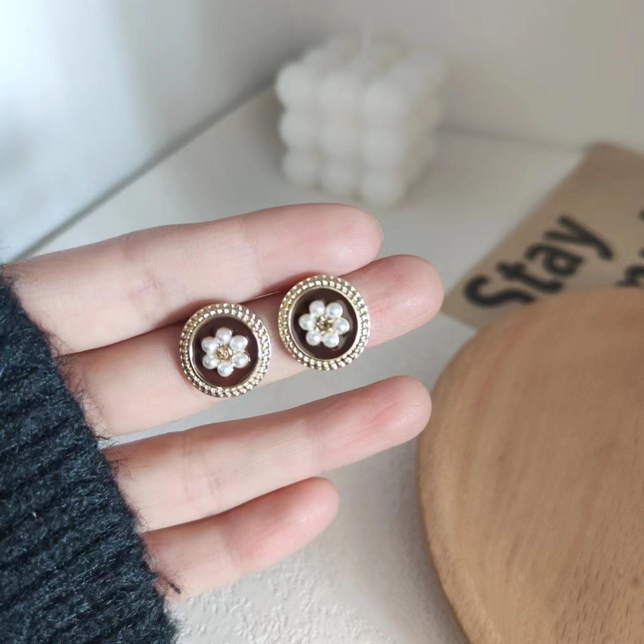 Compra Pendientes de plata S925 con forma de aguja, estilo francés, retro, geométricos, redondos, de alta gama, con flores de perla, sencillos y elegantes, para mujer. al por mayor en Joom.pro