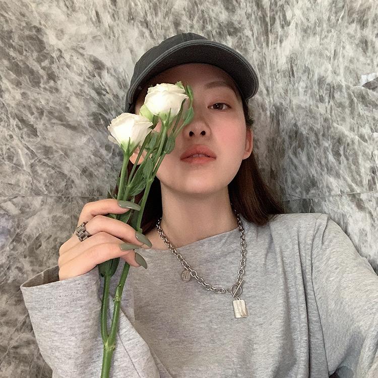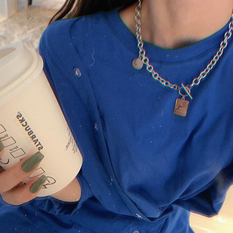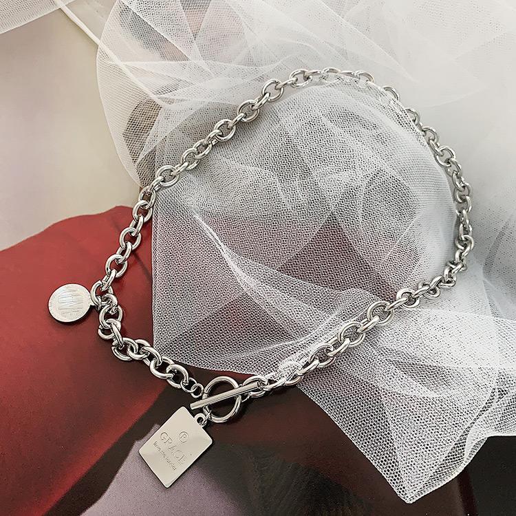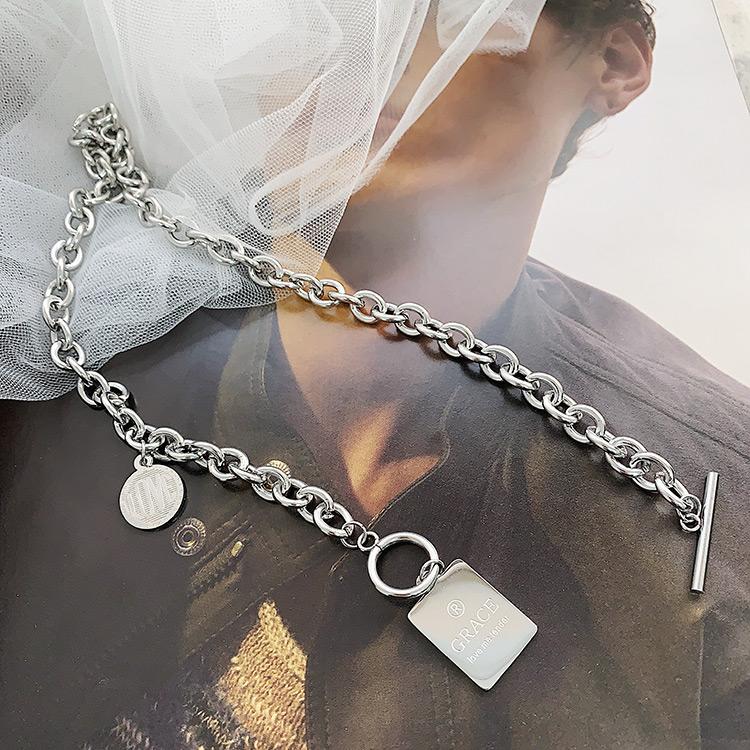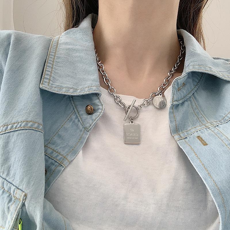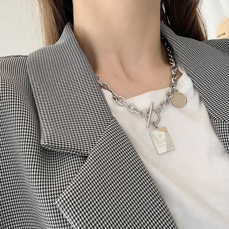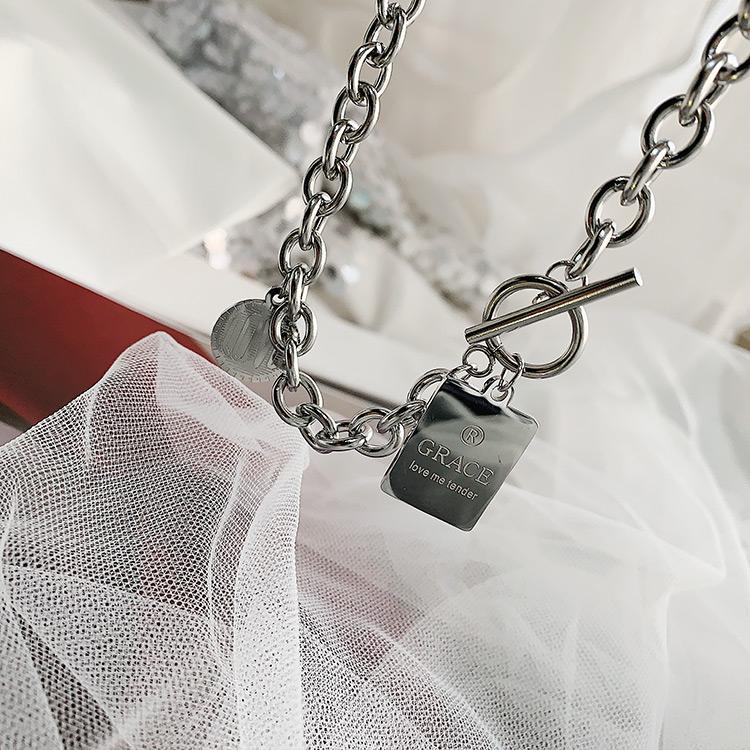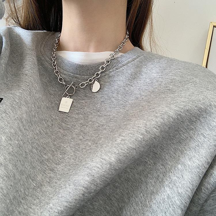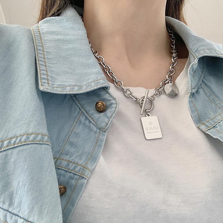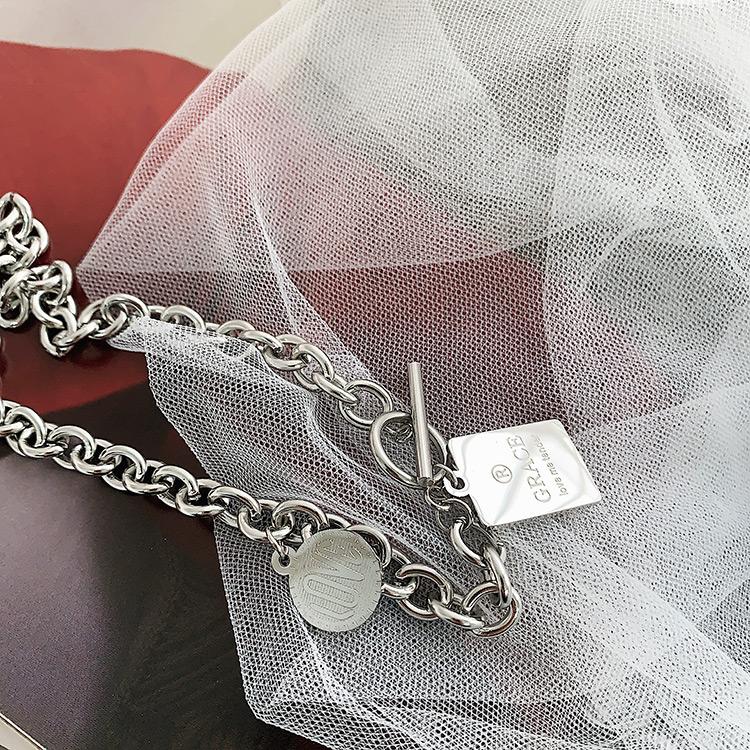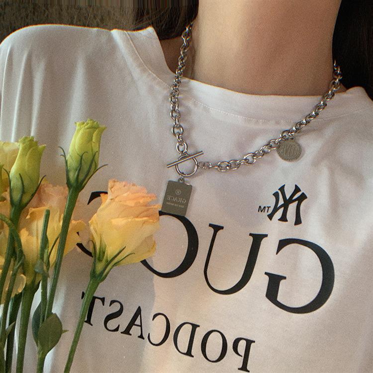 Collar de acero inoxidable de moda europea y americana, personalidad femenina de hip hop, cadena de clavícula con colgante de celebridad de Internet, cadena de suéter de hip hop de moda