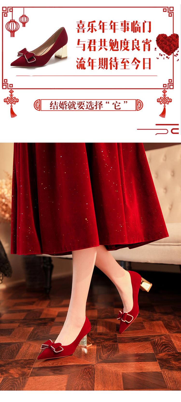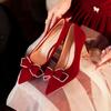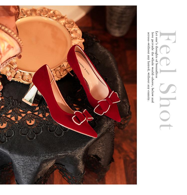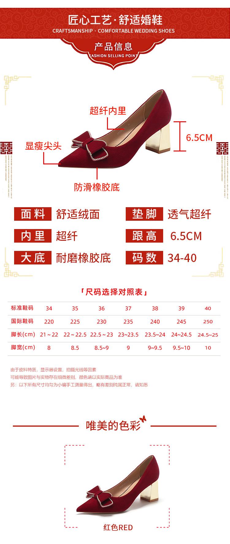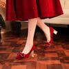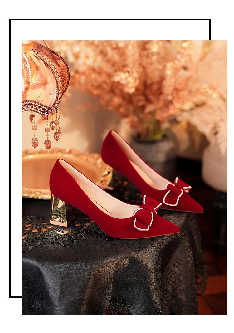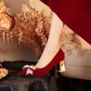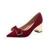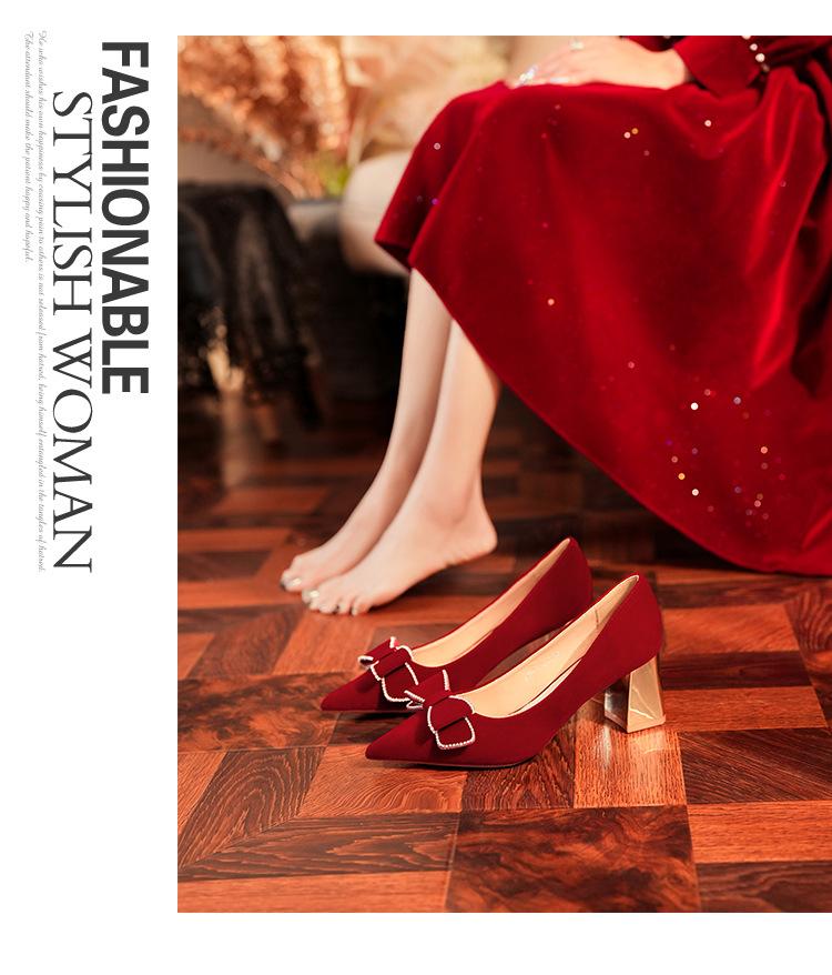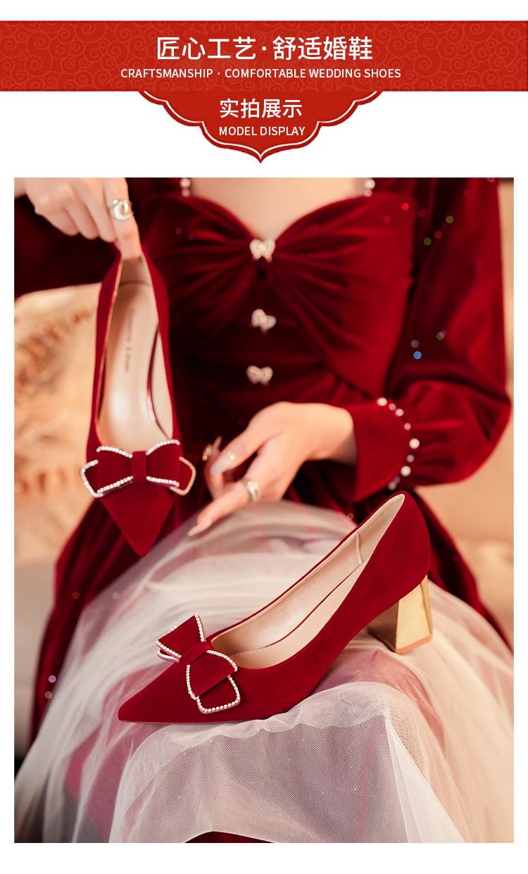 6555H-058 zapatos de boda rojos tacón grueso pies no cansados tacones altos de mujer zapatos individuales vestido de novia festivo nuevo lazo