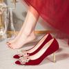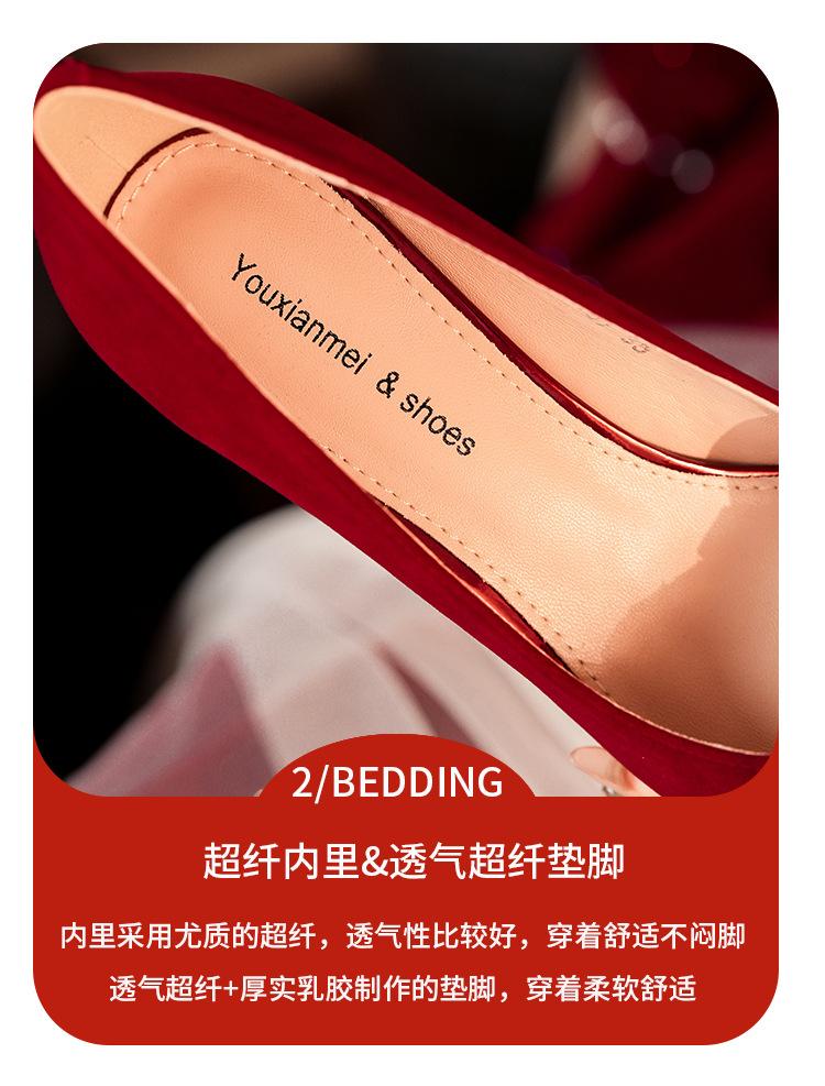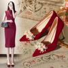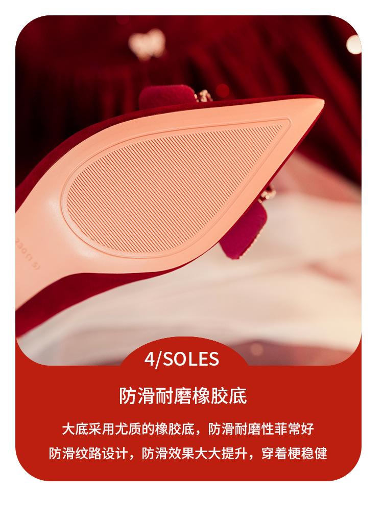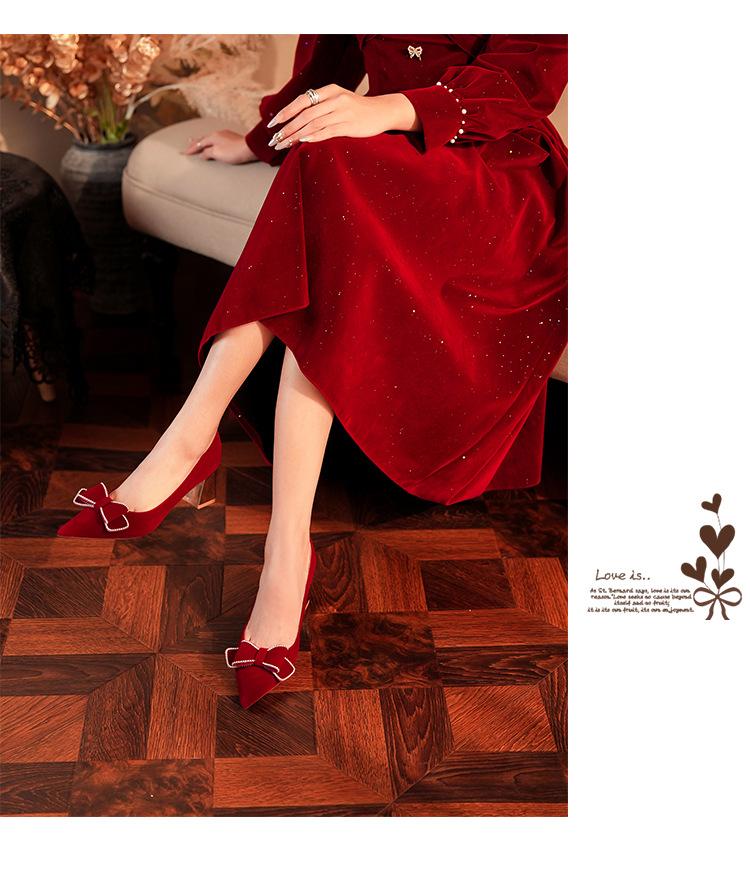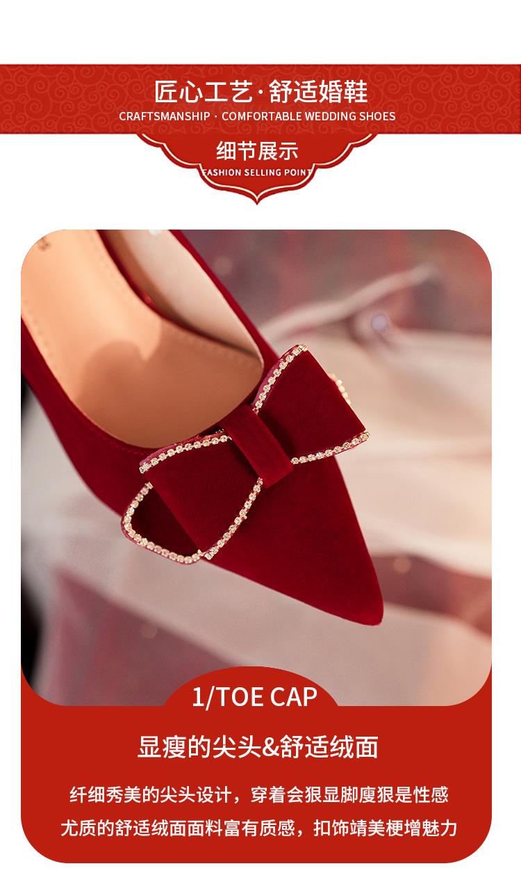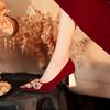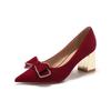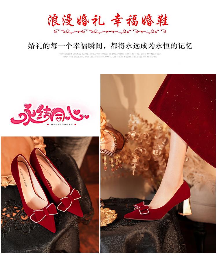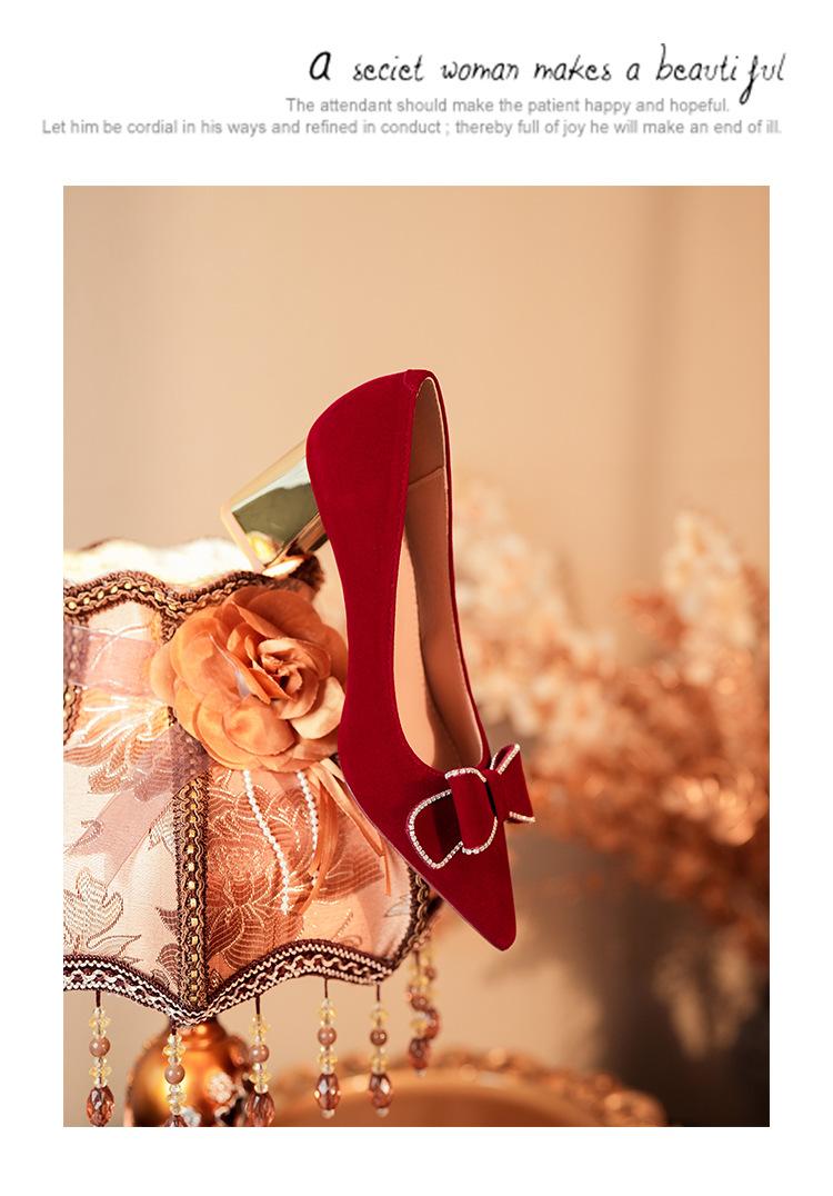 6555H-058 zapatos de boda rojos tacón grueso pies no cansados tacones altos de mujer zapatos individuales vestido de novia festivo nuevo lazo