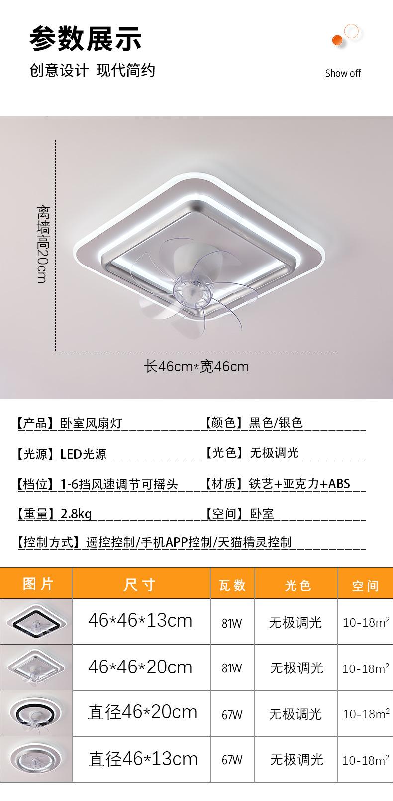 Lámpara de ventilador de techo para dormitorio, con suministro directo transfronterizo, lámpara de ventilador de techo integrada ultrafina, lámpara de ventilador para restaurante doméstico, lámpara de habitación
